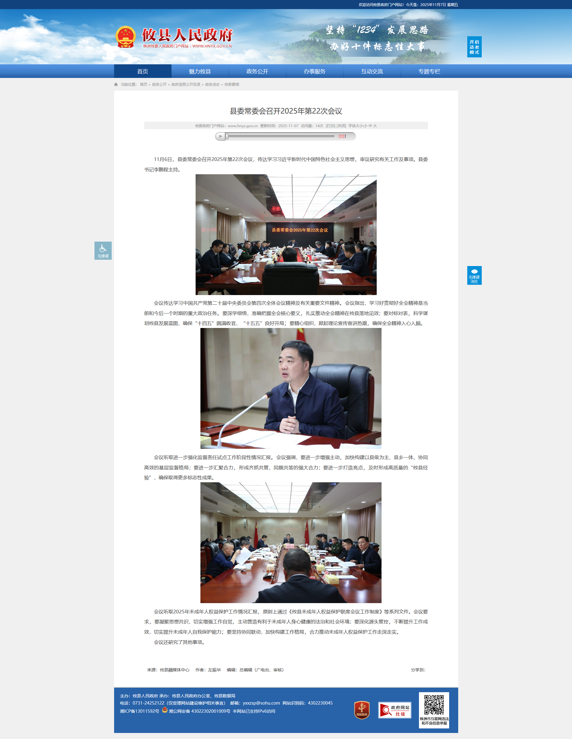 11月6日,县委常委会召开2025年第22次会议,传达学习习近平新时代中国特色社会主义思想,审议研究有关工作及事项。县委书记李鹏程主持。