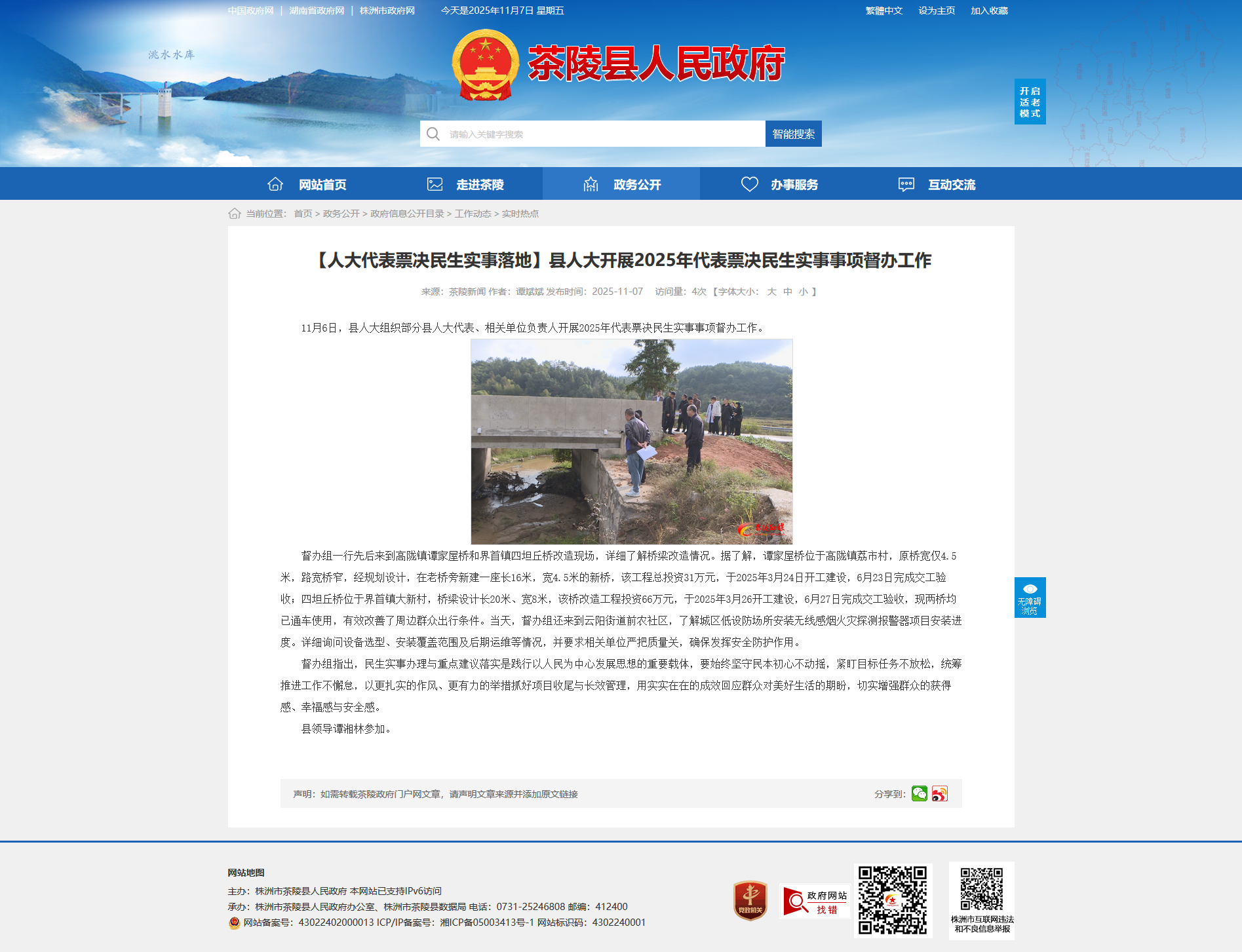 11月6日,县人大组织部分县人大代表、相关单位负责人开展2025年代表票决民生实事事项督办工作。