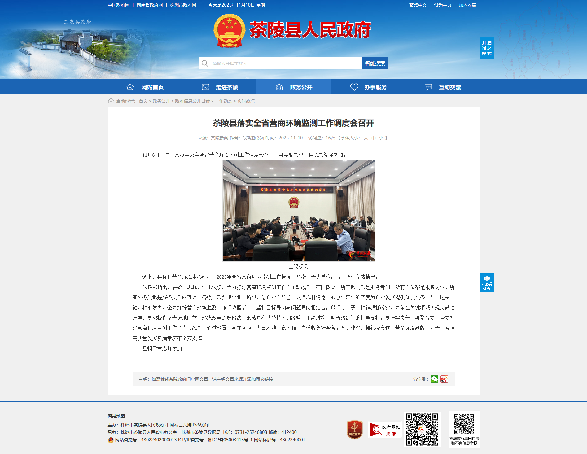 11月6日下午,茶陵县落实全省营商环境监测工作调度会召开。县委副书记、县长朱毅强参加。