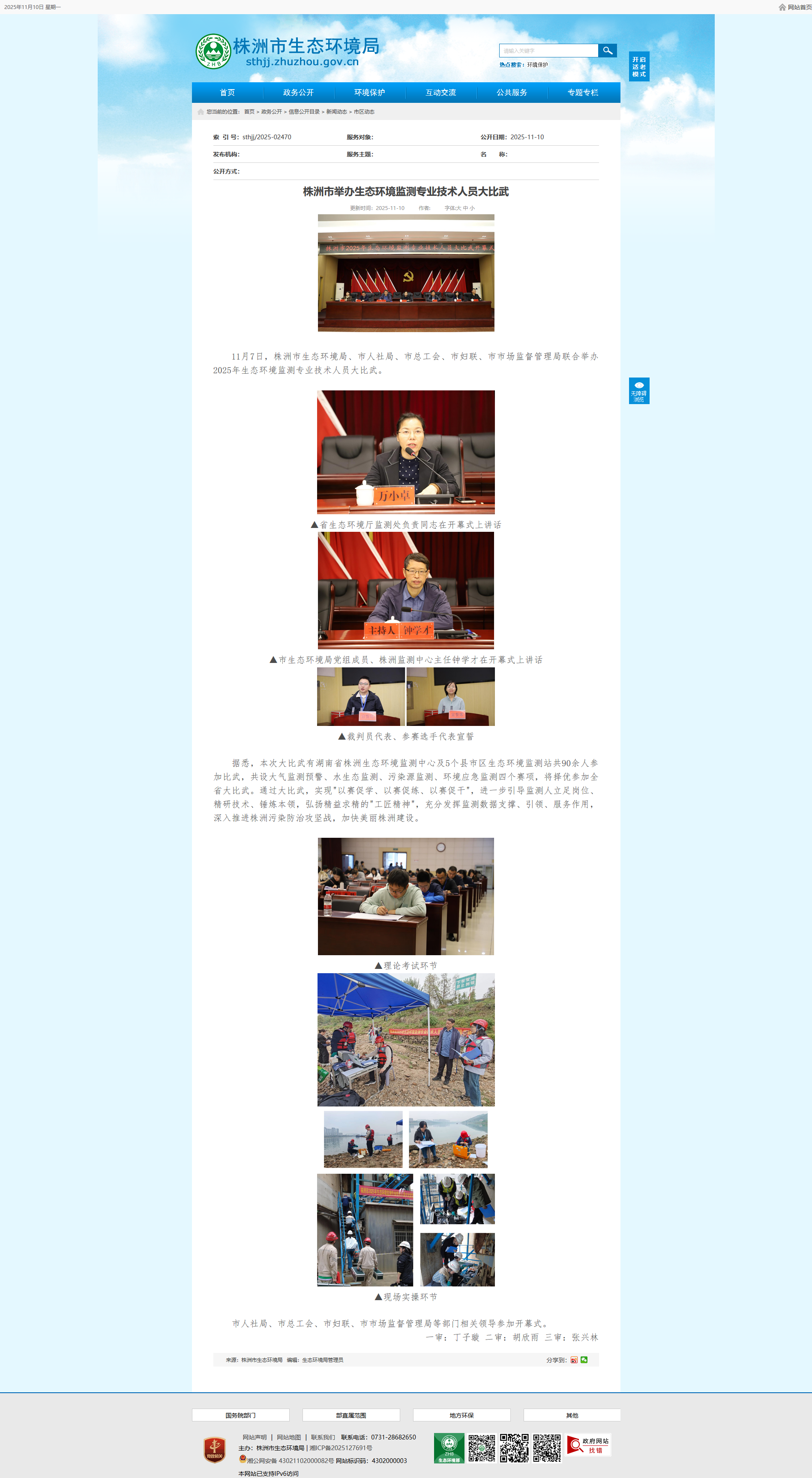 11月7日,株洲市生态环境局、市人社局、市总工会、市妇联、市市场监督管理局联合举办2025年生态环境监测专业技术人员大比武。