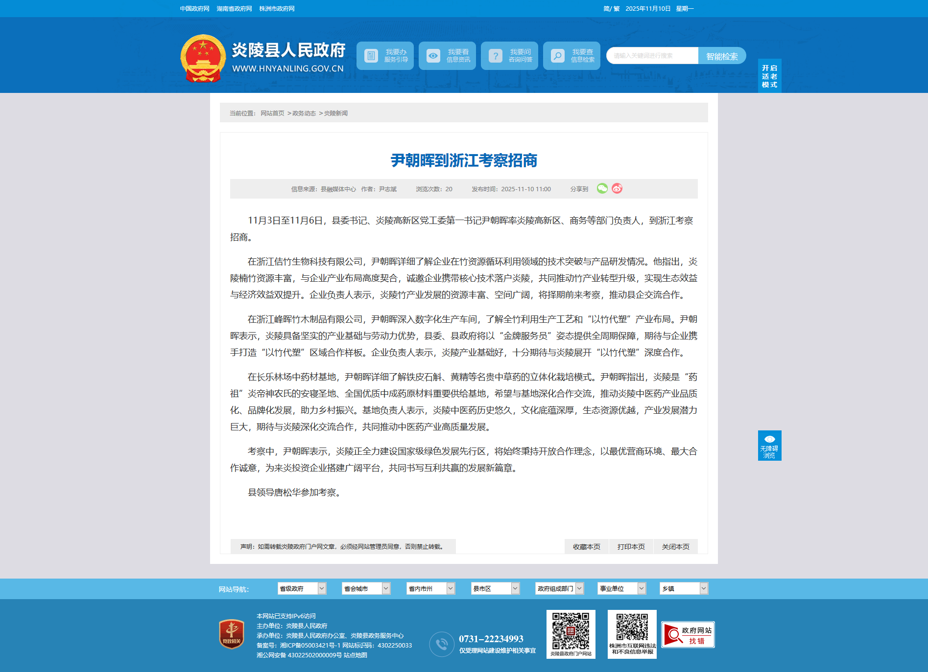 考察中,尹朝晖表示,炎陵正全力建设国家级绿色发展先行区,将始终秉持开放合作理念,以最优营商环境、最大合作诚意,为来炎投资企业搭建广阔平台,共同书写互利共赢的发展新篇章。