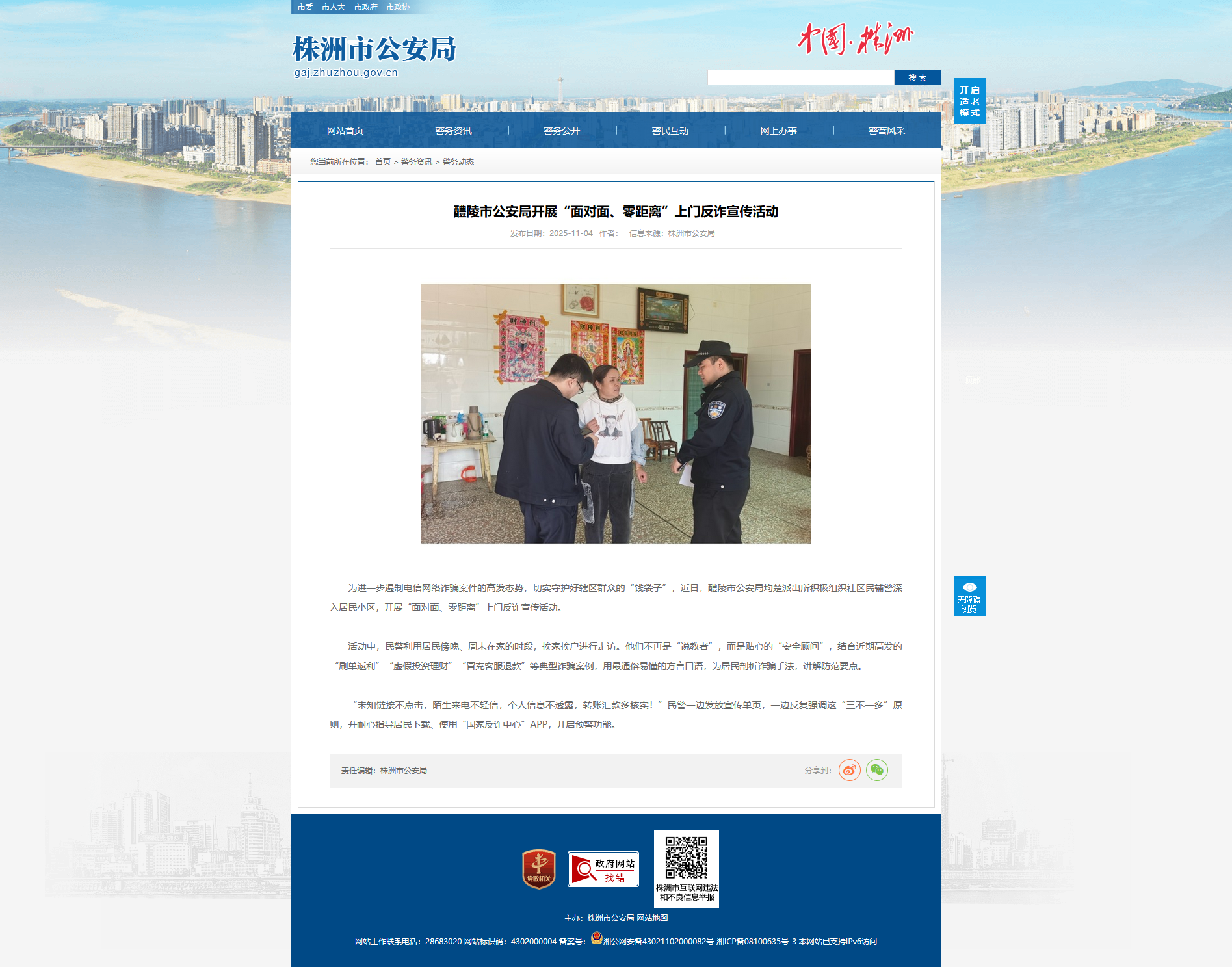 为进一步遏制电信网络诈骗案件的高发态势,切实守护好辖区群众的“钱袋子”,近日,醴陵市公安局均楚派出所积极组织社区民辅警深入居民小区,开展“面对面、零距离”上门反诈宣传活动。