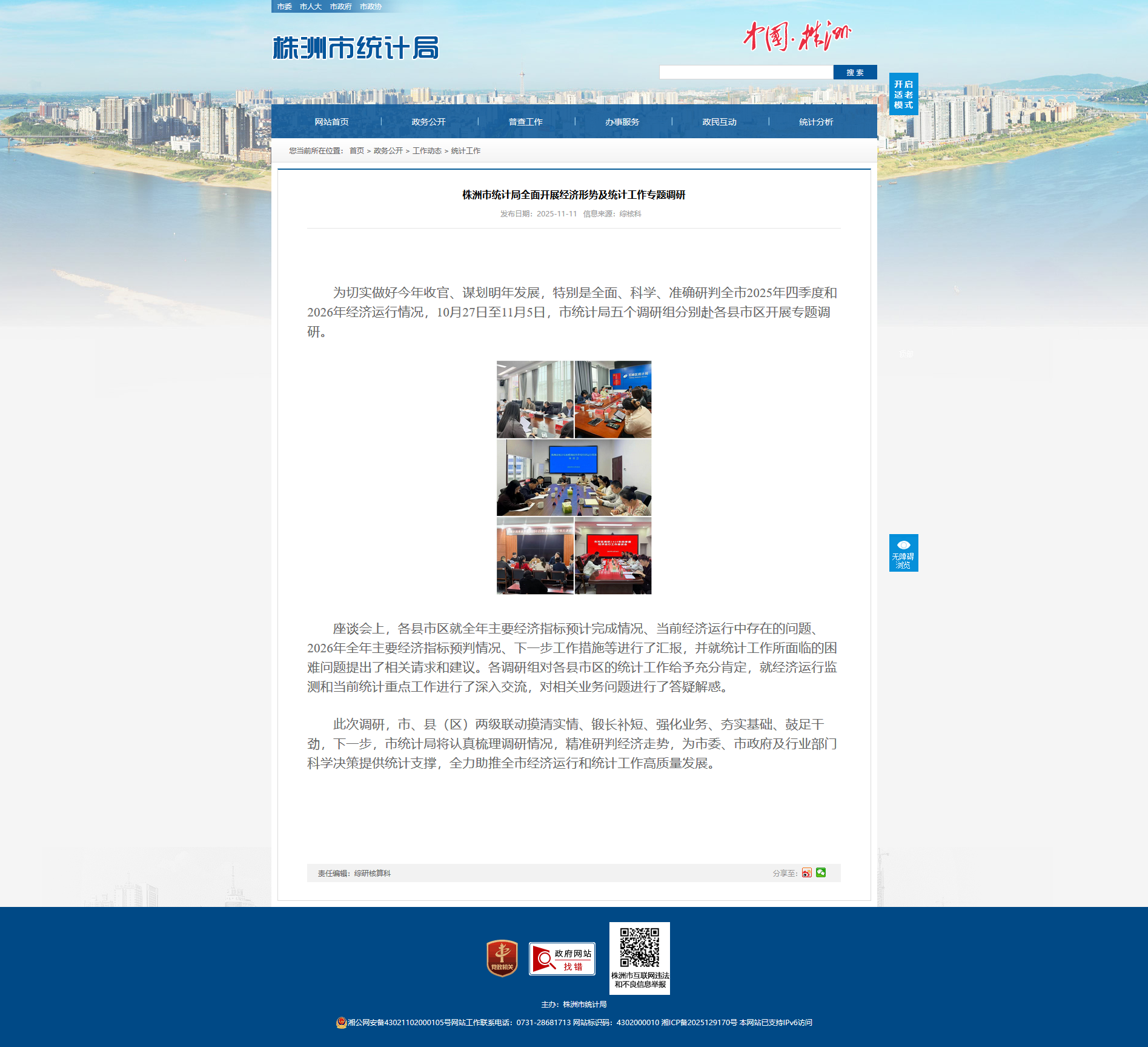 为切实做好今年收官、谋划明年发展,特别是全面、科学、准确研判全市2025年四季度和2026年经济运行情况,10月27日至11月5日,市统计局五个调研组分别赴各县市区开展专题调研。