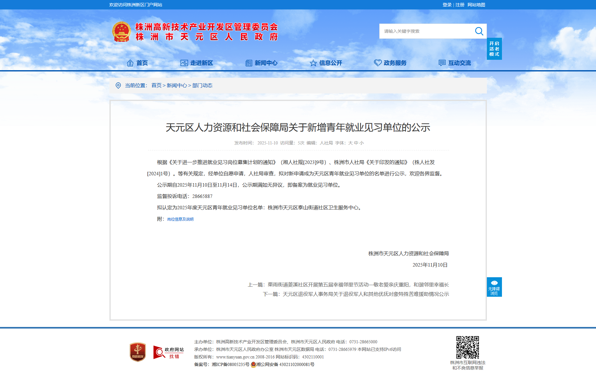 时间:2025-11-10 09:33:44 来源: 株洲市天元区人民政府 来源截图
