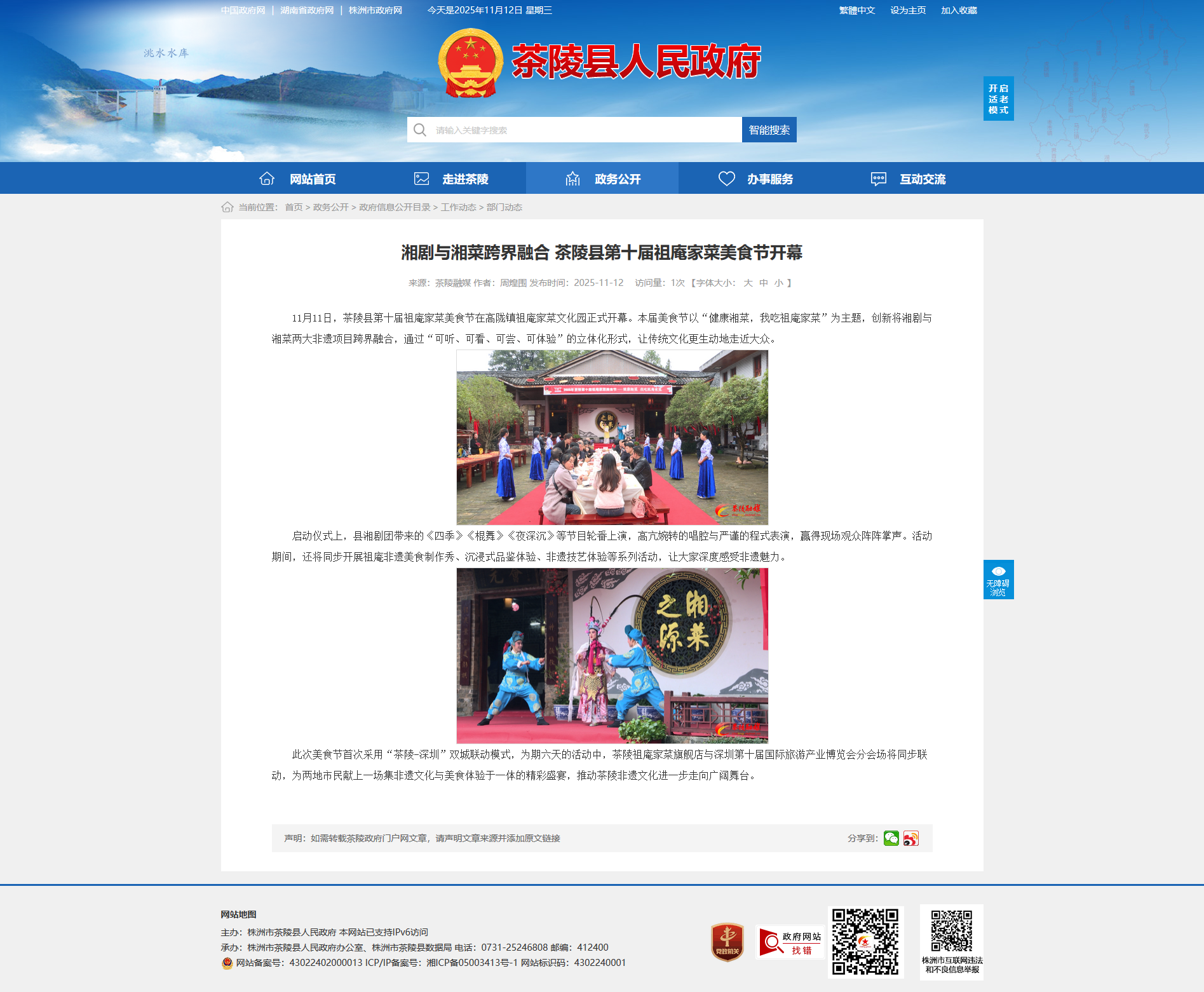 11月11日,茶陵县第十届祖庵家菜美食节在高陇镇祖庵家菜文化园正式开幕。本届美食节以“健康湘菜,我吃祖庵家菜”为主题,创新将湘剧与湘菜两大非遗项目跨界融合,通过“可听、可看、可尝、可体验”的立体化形式,让传统文化更生动地走近大众。