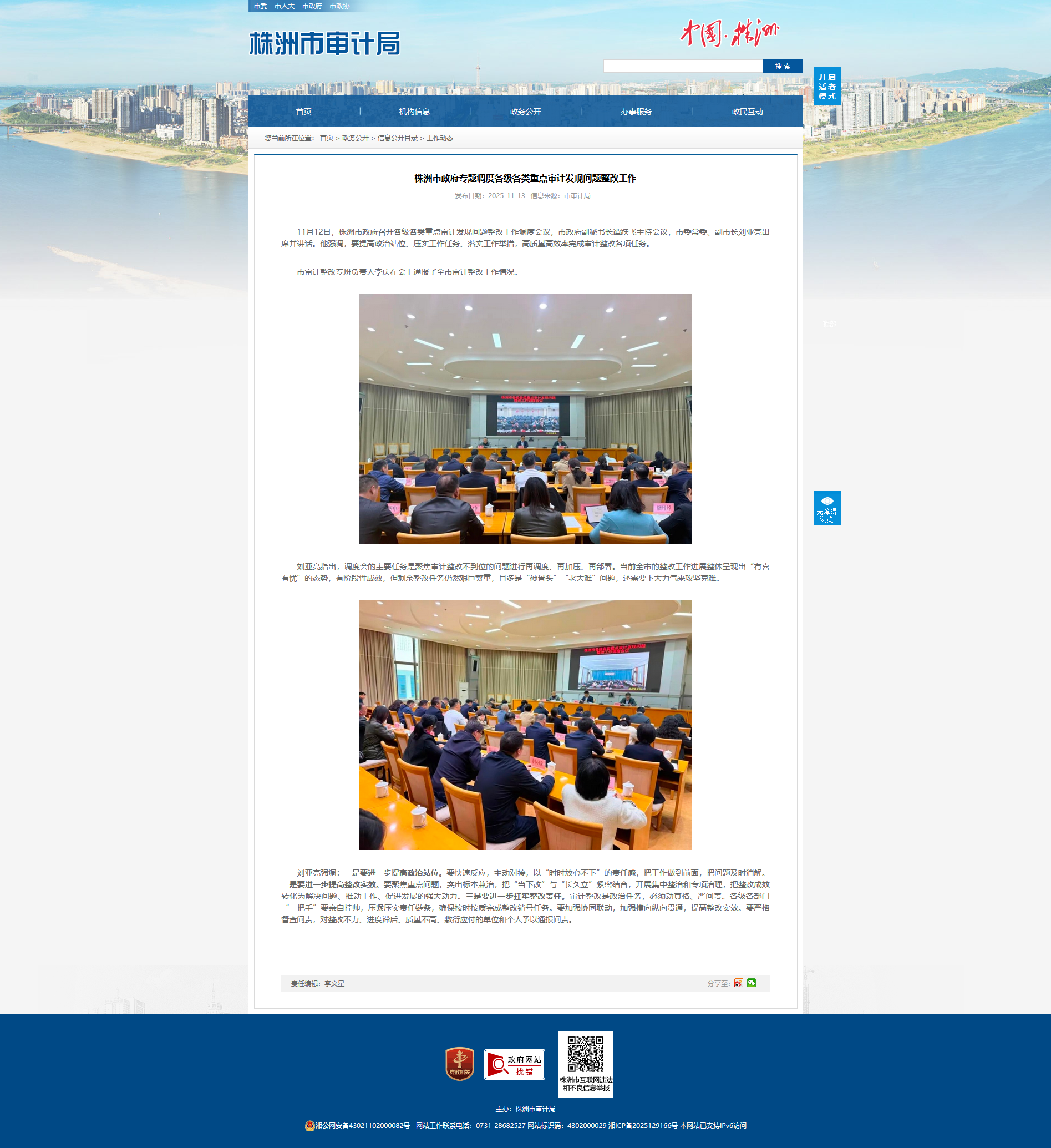 11月12日,株洲市政府召开各级各类重点审计发现问题整改工作调度会议,市政府副秘书长谭跃飞主持会议,市委常委、副市长刘亚亮出席并讲话。他强调,要提高政治站位、压实工作任务、落实工作举措,高质量高效率完成审计整改各项任务。