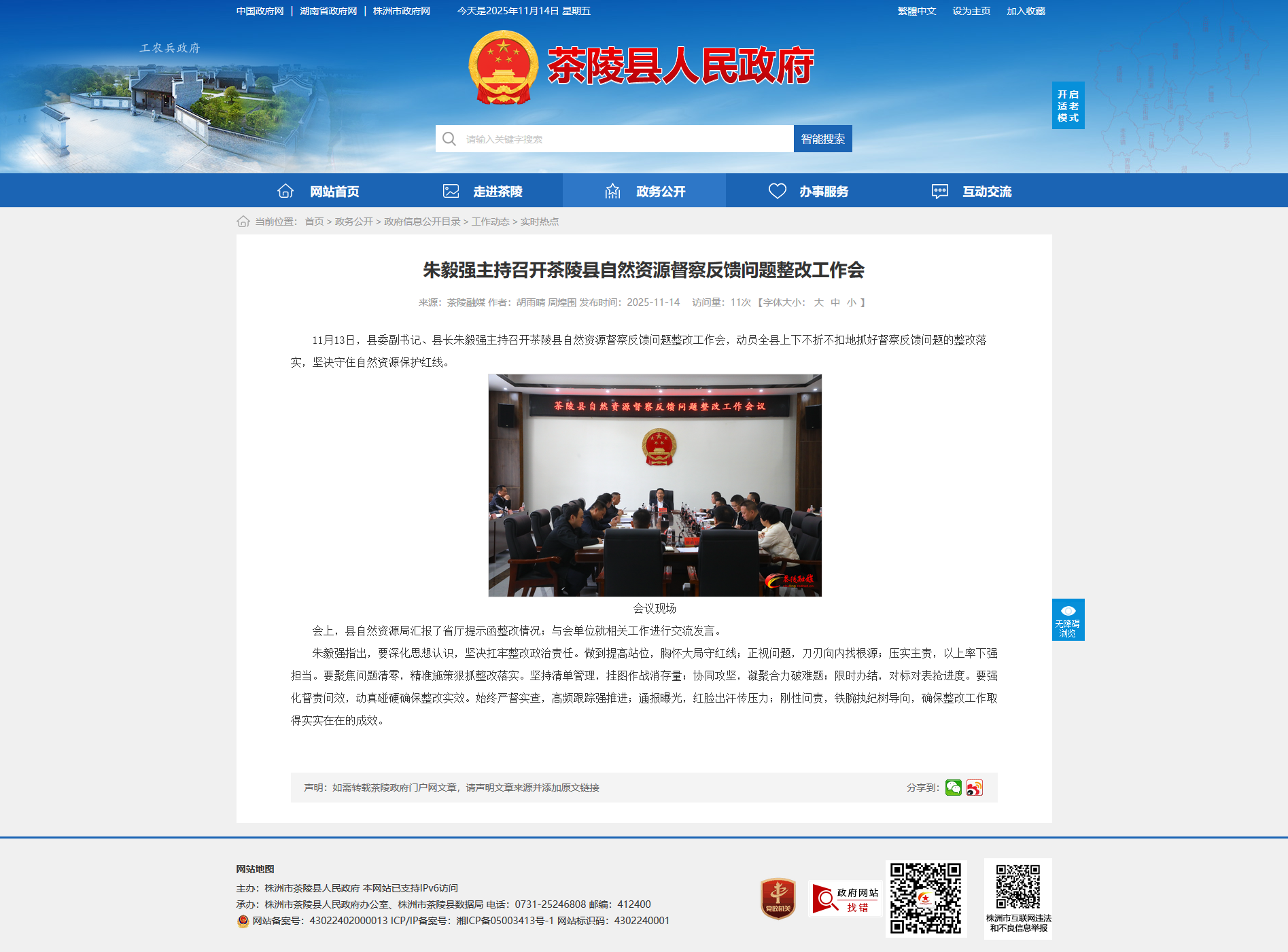 11月13日,县委副书记、县长朱毅强主持召开茶陵县自然资源督察反馈问题整改工作会,动员全县上下不折不扣地抓好督察反馈问题的整改落实,坚决守住自然资源保护红线。
