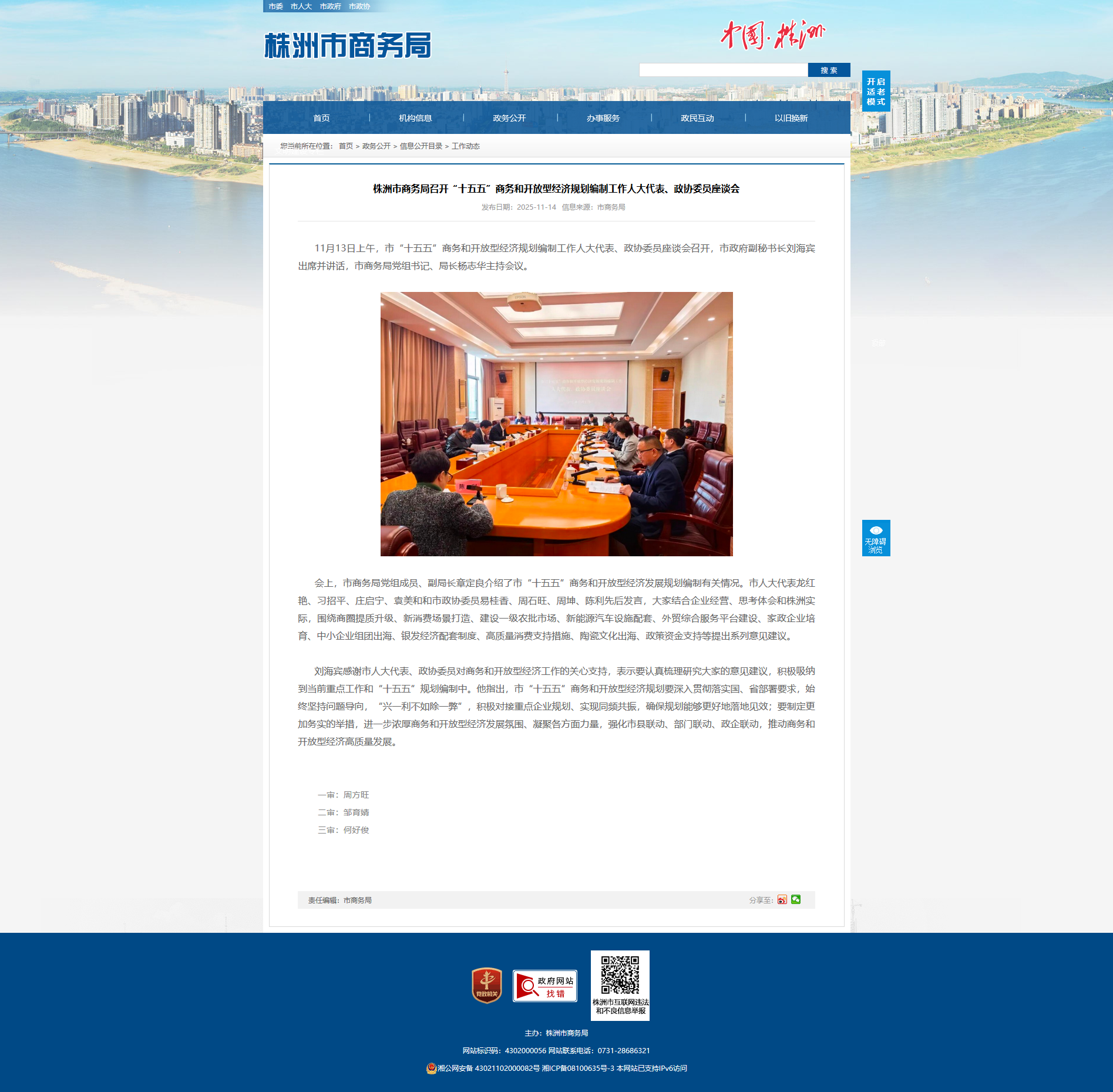 会上,市商务局党组成员、副局长章定良介绍了市“十五五”商务和开放型经济发展规划编制有关情况。市人大代表龙红艳、习招平、庄启宁、袁美和和市政协委员易桂香、周石旺、周坤、陈利先后发言,大家结合企业经营、思考体会和株洲实际,围绕商圈提质升级、新消费场景打造、建设一级农批市场、新能源汽车设施配套、外贸综合服务平台建设、家政企业培育、中小企业组团出海、银发经济配套制度、高质量消费支持措施、陶瓷文化出海、政策资金支持等提出系列意见建议。
