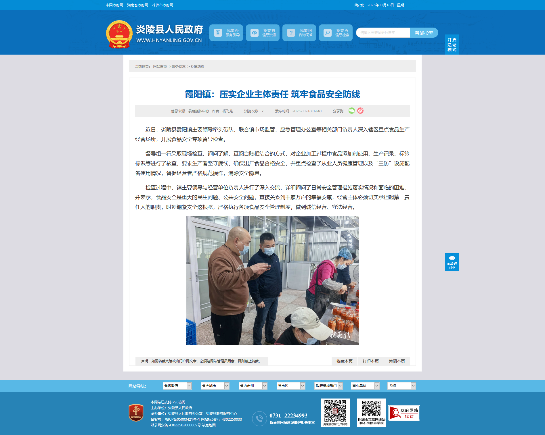 近日,炎陵县霞阳镇主要领导牵头带队,联合镇市场监管、应急管理办公室等相关部门负责人深入辖区重点食品生产经营场所,开展食品安全专项督导检查。