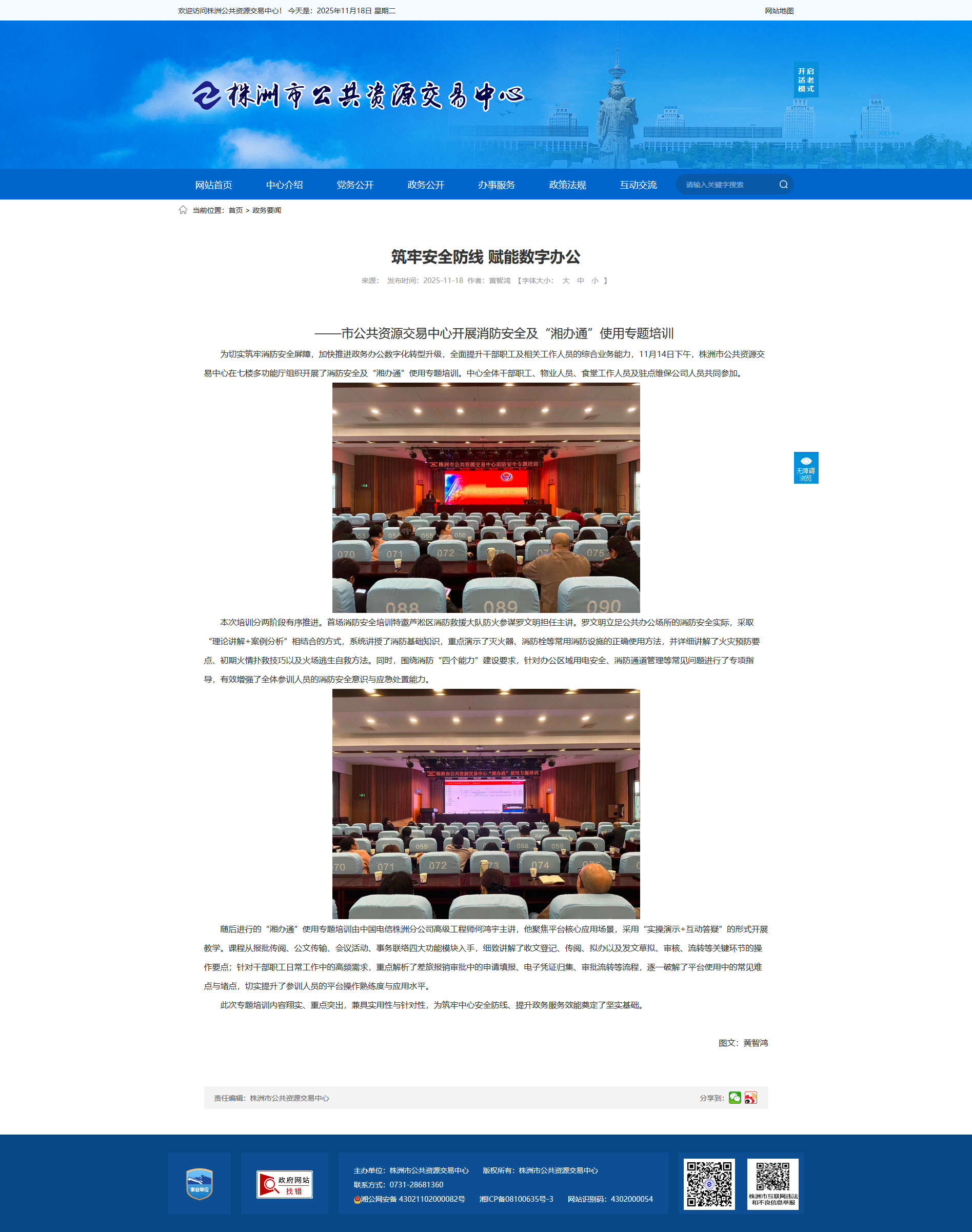 为切实筑牢消防安全屏障,加快推进政务办公数字化转型升级,全面提升干部职工及相关工作人员的综合业务能力,11月14日下午,株洲市公共资源交易中心在七楼多功能厅组织开展了消防安全及“湘办通”使用专题培训。中心全体干部职工、物业人员、食堂工作人员及驻点维保公司人员共同参加。