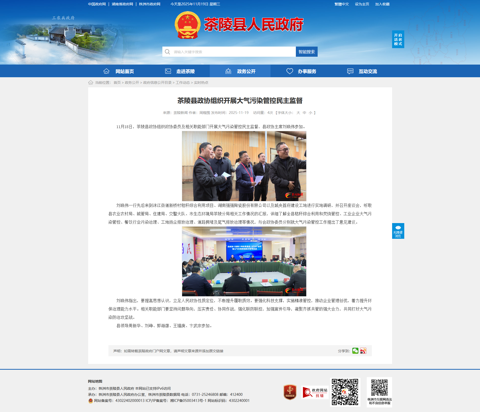 11月18日,茶陵县政协组织政协委员及相关职能部门开展大气污染管控民主监督,县政协主席刘晓伟参加。