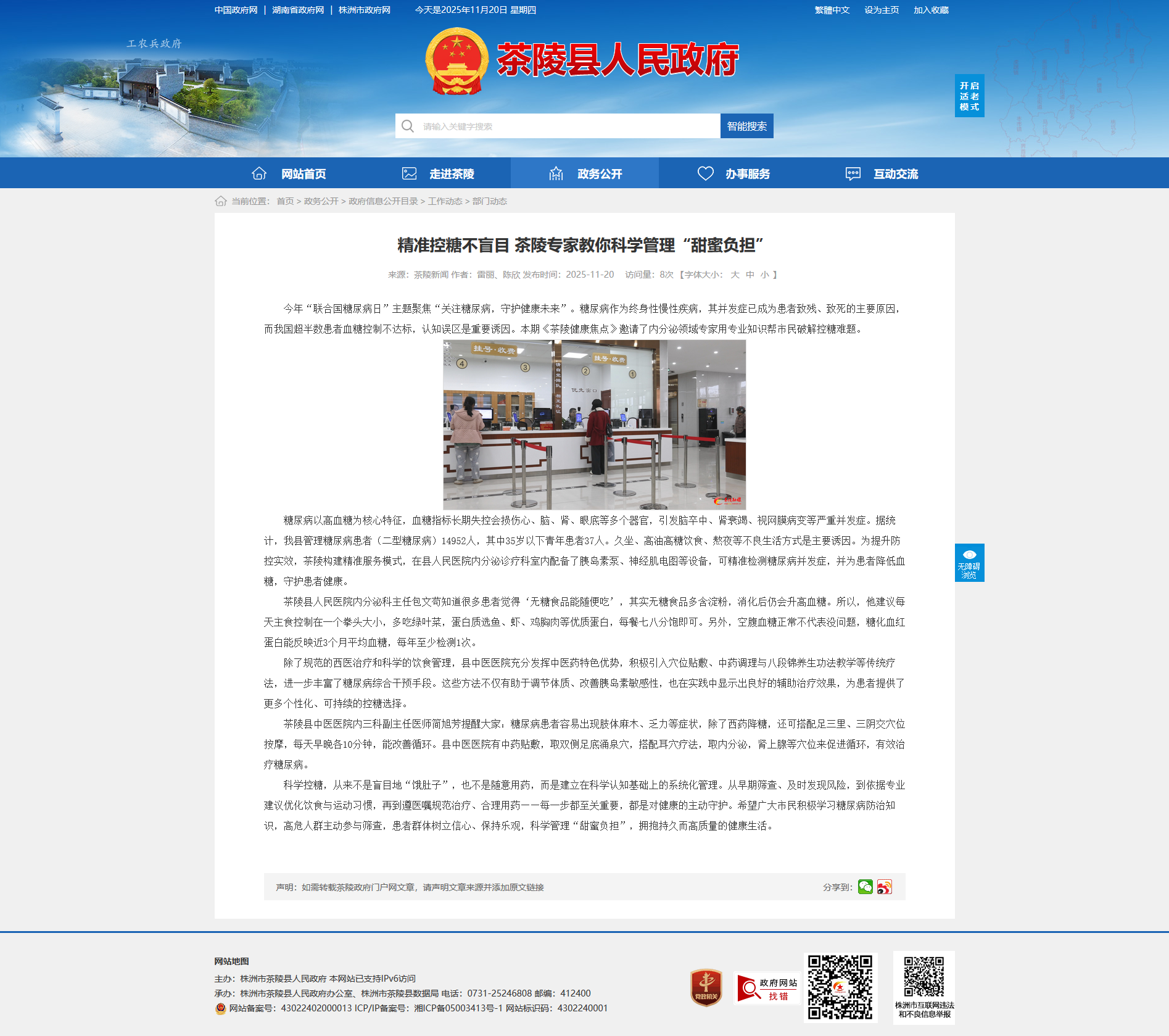 今年“联合国糖尿病日”主题聚焦“关注糖尿病,守护健康未来”。糖尿病作为终身性慢性疾病,其并发症已成为患者致残、致死的主要原因,而我国超半数患者血糖控制不达标,认知误区是重要诱因。本期《茶陵健康焦点》邀请了内分泌领域专家用专业知识帮市民破解控糖难题。