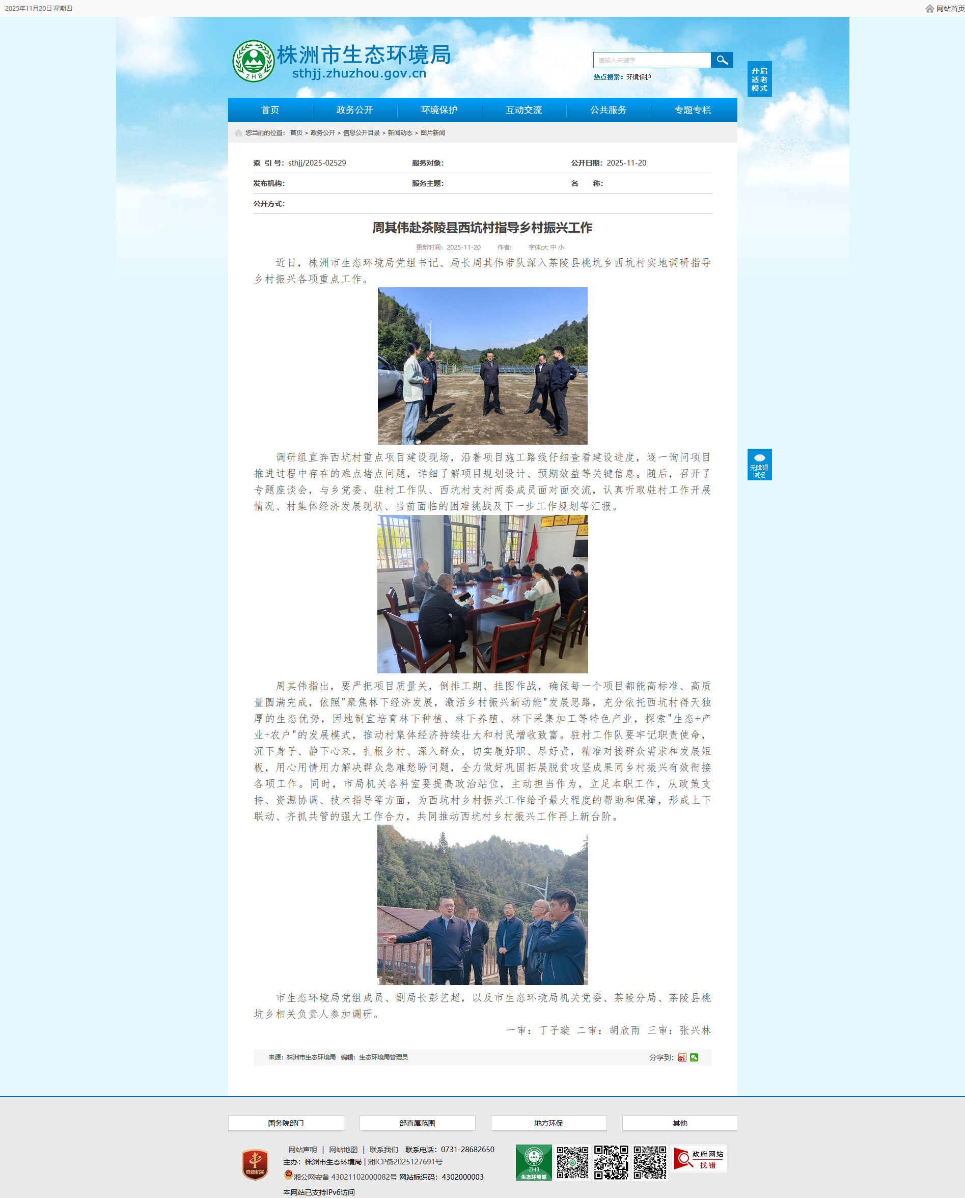 近日,株洲市生态环境局党组书记、局长周其伟带队深入茶陵县桃坑乡西坑村实地调研指导乡村振兴各项重点工作。