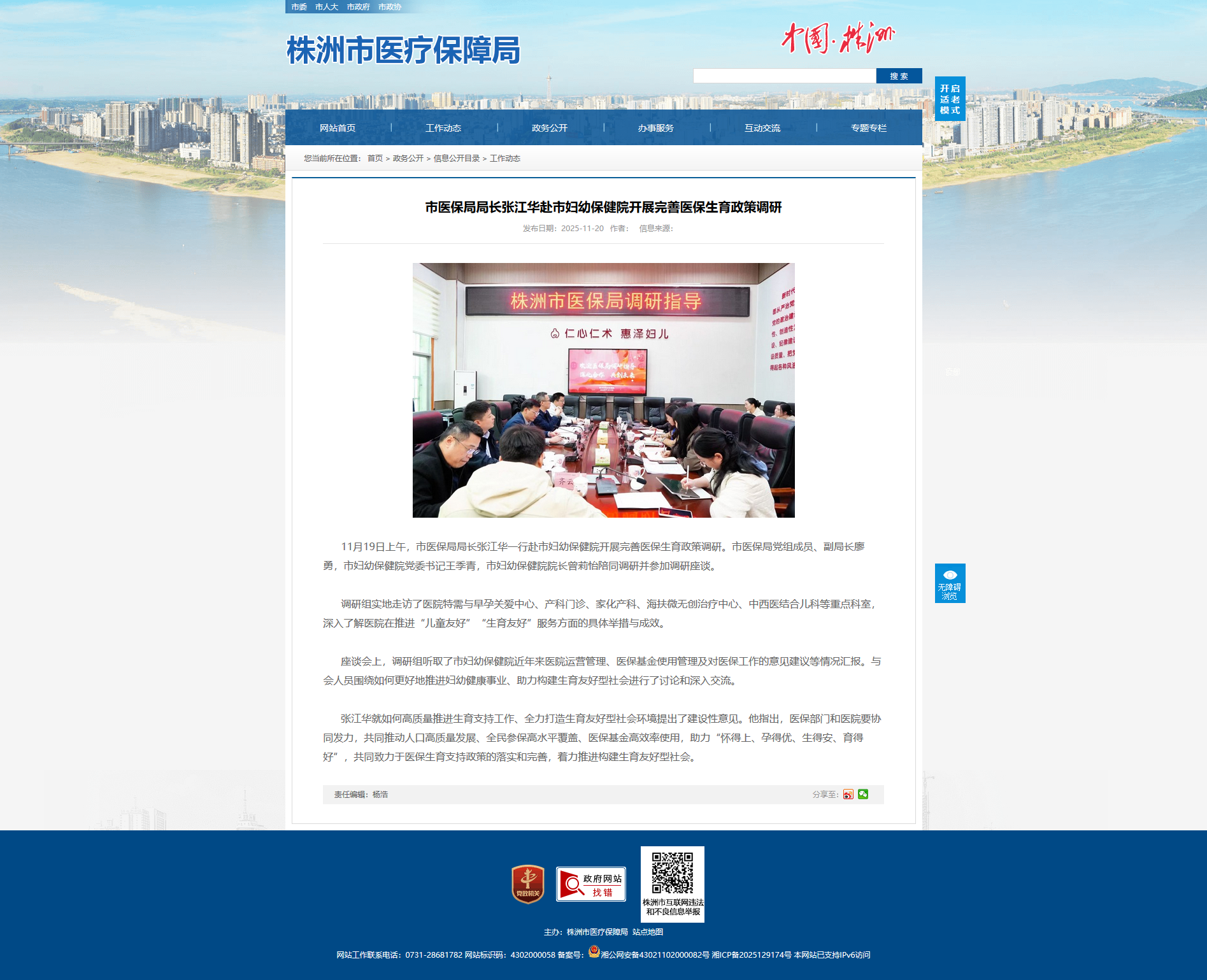 张江华就如何高质量推进生育支持工作、全力打造生育友好型社会环境提出了建设性意见。他指出,医保部门和医院要协同发力,共同推动人口高质量发展、全民参保高水平覆盖、医保基金高效率使用,助力“怀得上、孕得优、生得安、育得好”,共同致力于医保生育支持政策的落实和完善,着力推进构建生育友好型社会。