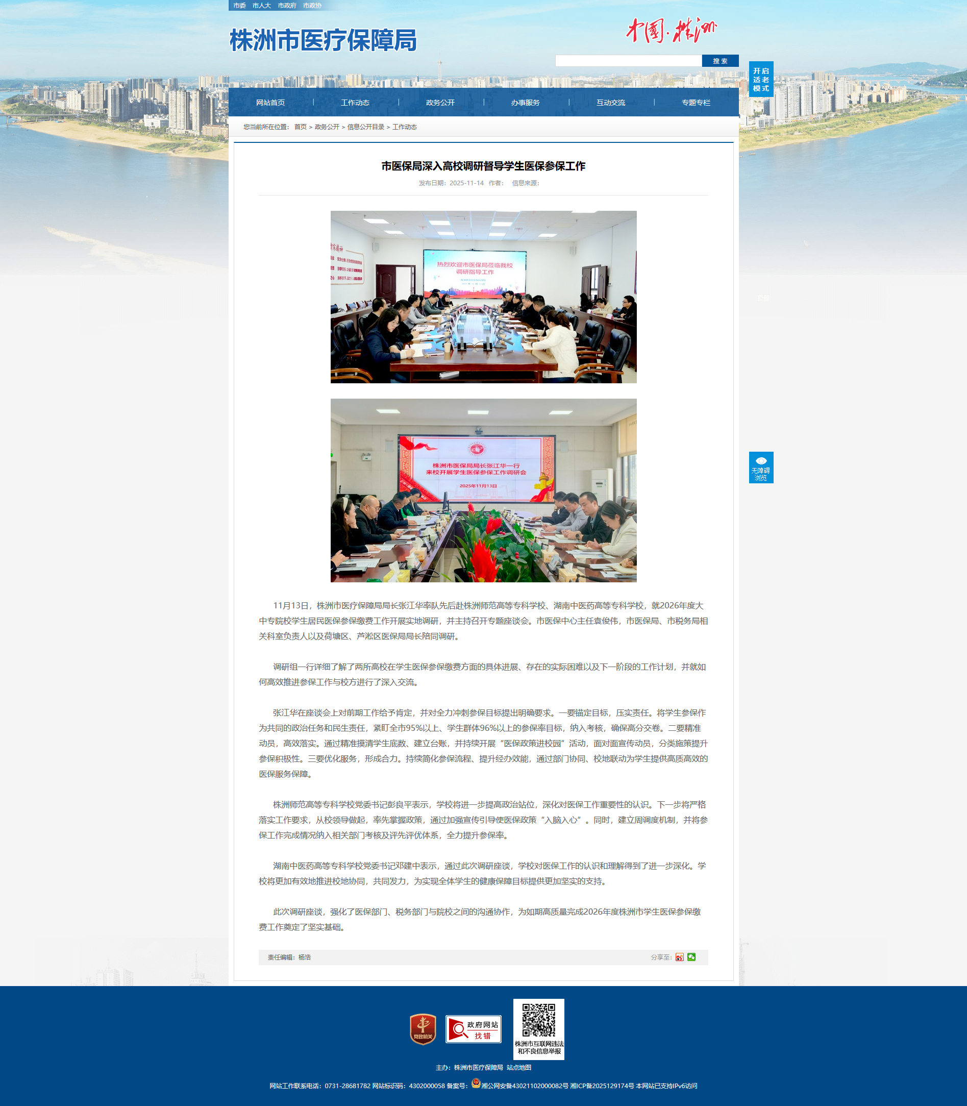 此次调研座谈,强化了医保部门、税务部门与院校之间的沟通协作,为如期高质量完成2026年度株洲市学生医保参保缴费工作奠定了坚实基础。