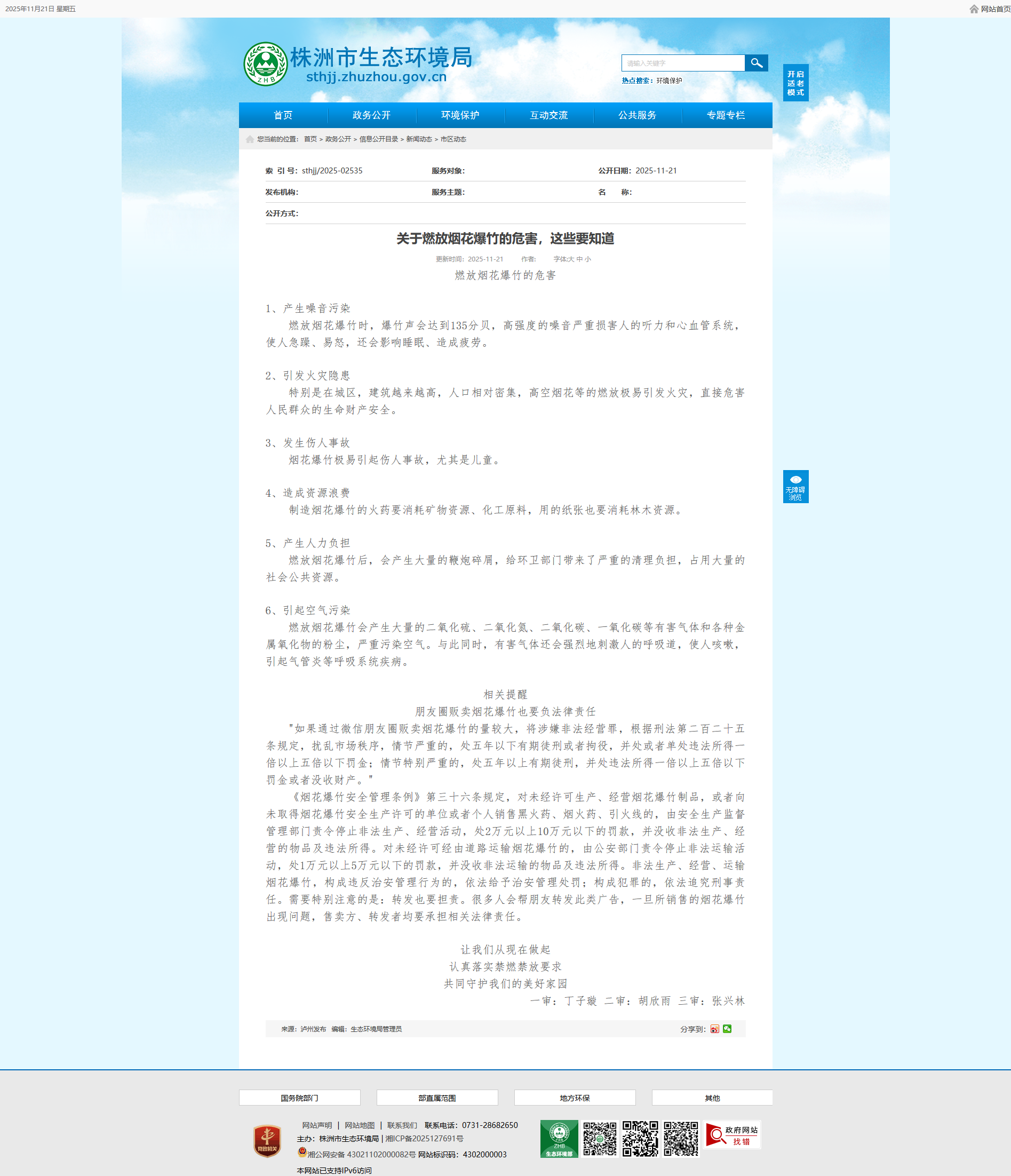 认真落实禁燃禁放要求