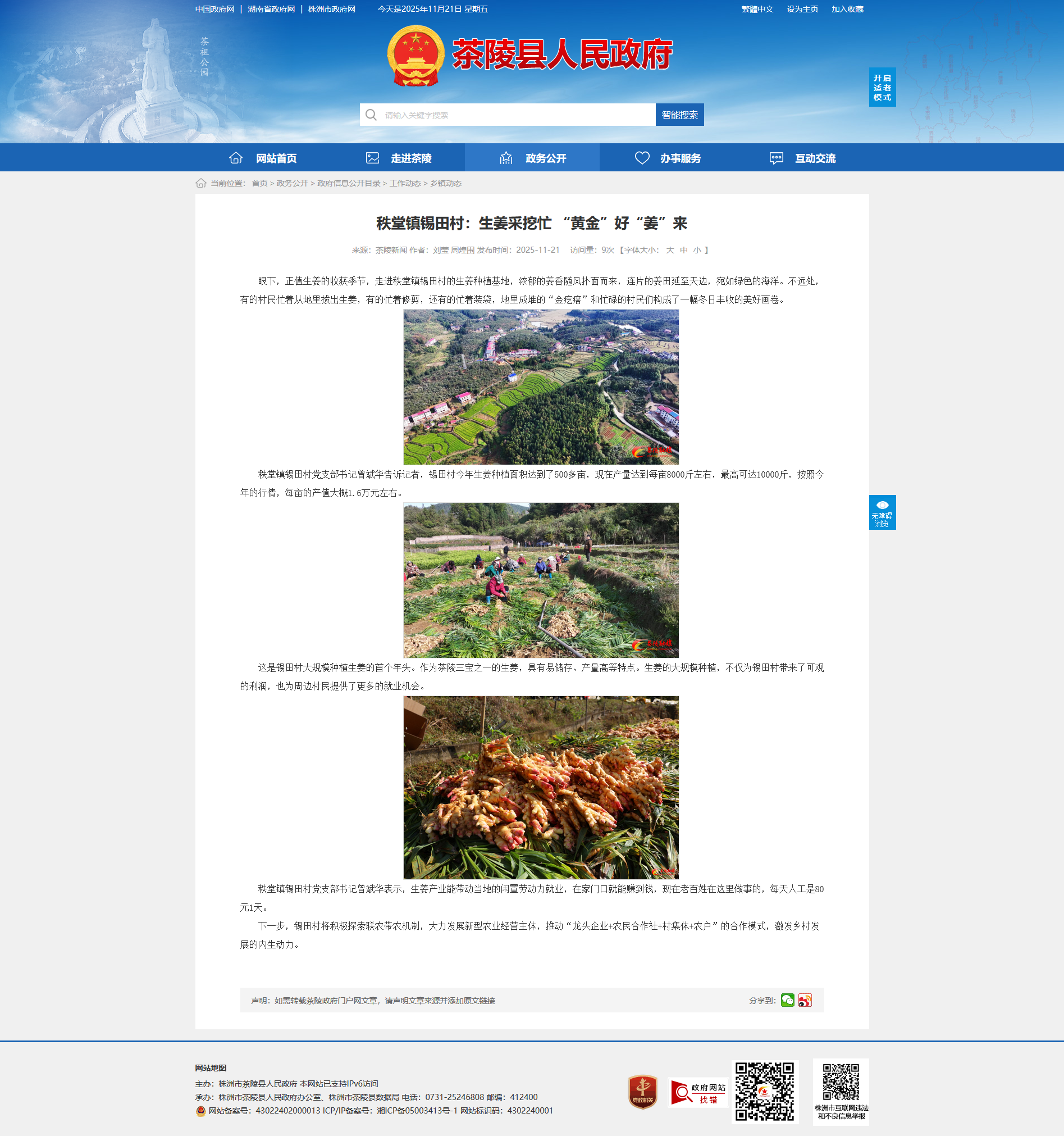这是锡田村大规模种植生姜的首个年头。作为茶陵三宝之一的生姜,具有易储存、产量高等特点。生姜的大规模种植,不仅为锡田村带来了可观的利润,也为周边村民提供了更多的就业机会。