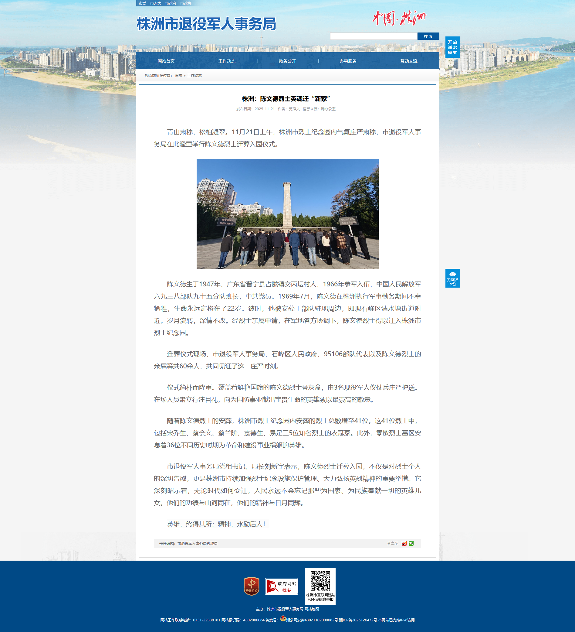 时间:2025-11-21 00:00:00 来源: 株洲市退役军人事务局 来源截图