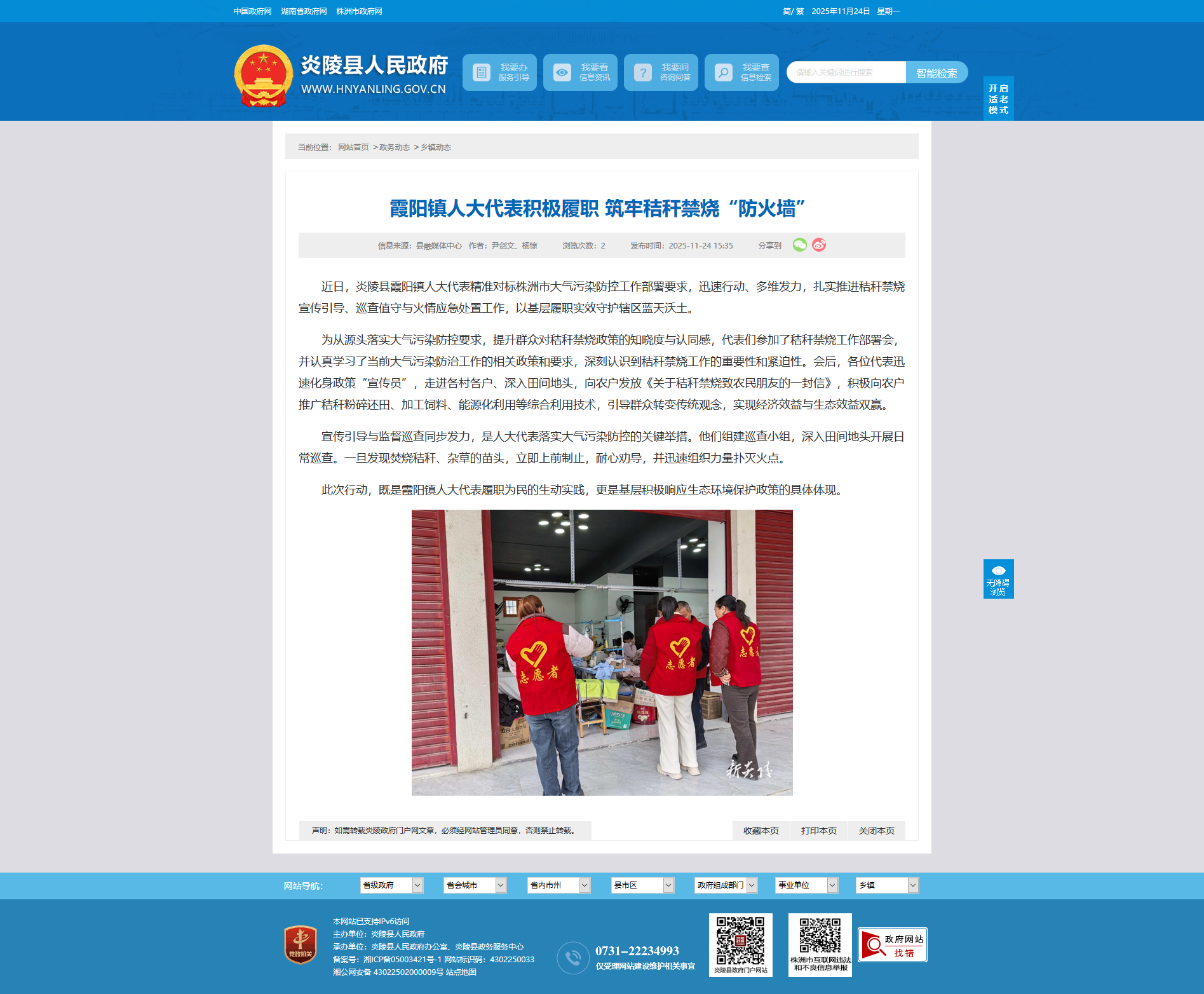 近日,炎陵县霞阳镇人大代表精准对标株洲市大气污染防控工作部署要求,迅速行动、多维发力,扎实推进秸秆禁烧宣传引导、巡查值守与火情应急处置工作,以基层履职实效守护辖区蓝天沃土。