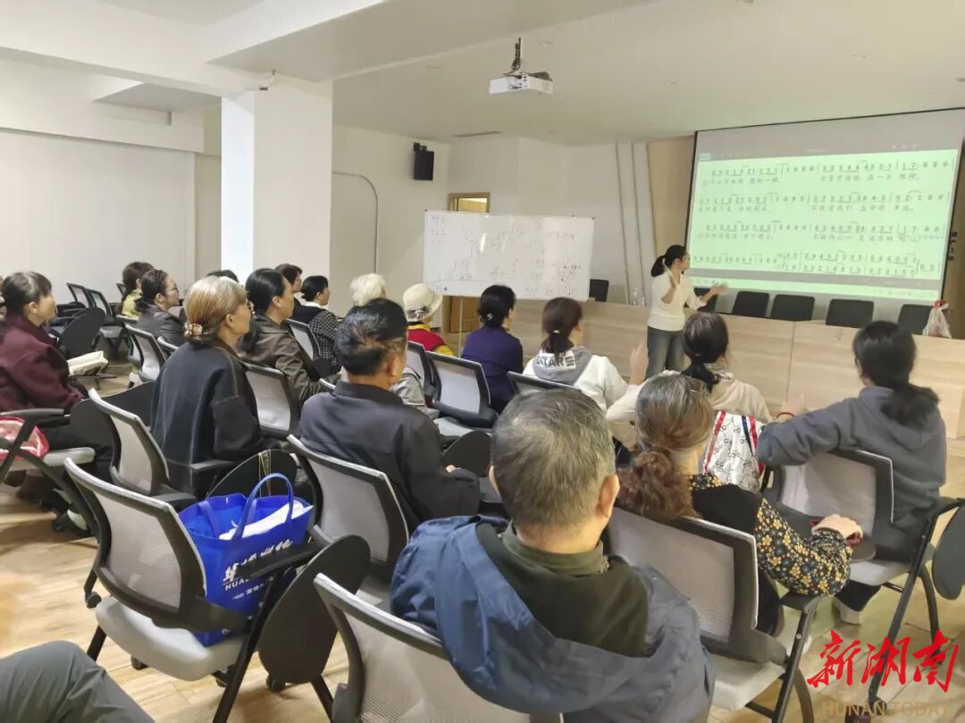 湖南日报11月24日讯(全媒体记者 李永亮 通讯员 邹林 张弥郁)11月20日晚,越剧爱好者向立群来到株洲市天元区嵩山街道临江社区,为20余名社区居民传授越剧唱腔。向立群是天元区一位普通居民,也是天元区“幸福邻里文体学院”的一名在库教师,她每周有两个晚上到社区授课。