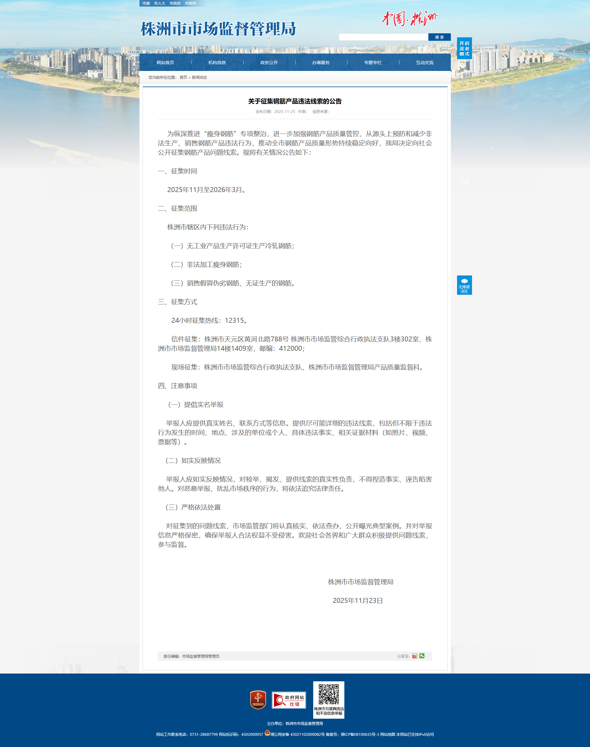 时间:2025-11-25 00:00:00 来源: 株洲市市场监督管理局 来源截图