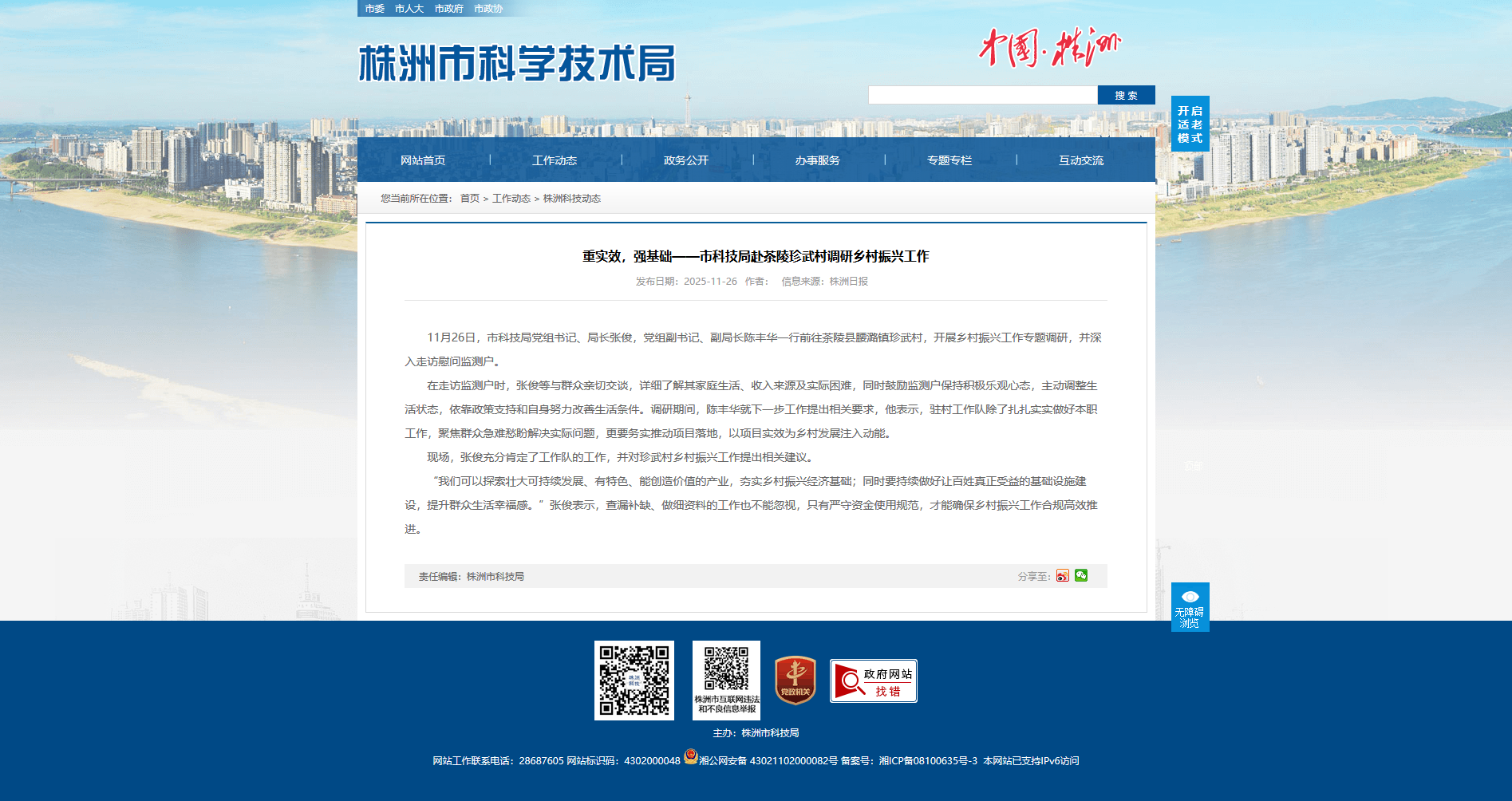 11月26日,市科技局党组书记、局长张俊,党组副书记、副局长陈丰华一行前往茶陵县腰潞镇珍武村,开展乡村振兴工作专题调研,并深入走访慰问监测户。