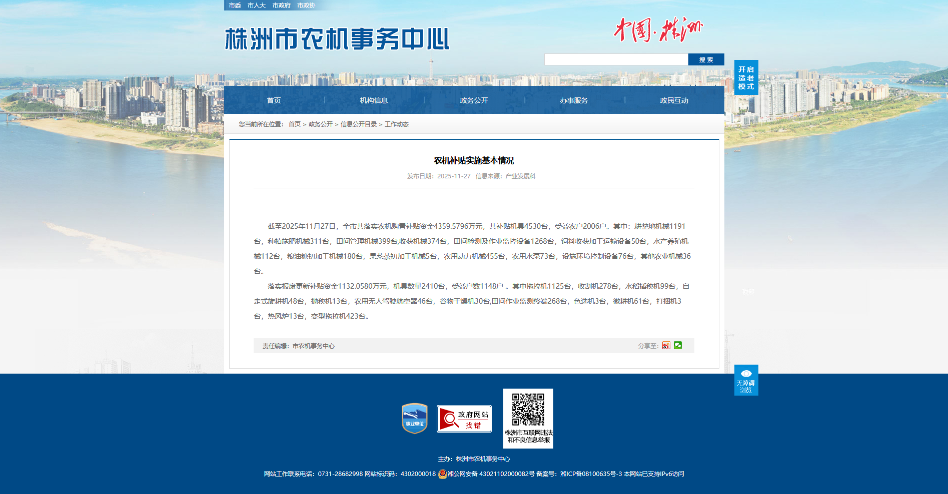 截至2025年11月27日,全市共落实农机购置补贴资金4359.5796万元,共补贴机具4530台,受益农户2006户。其中:耕整地机械1191台,种植施肥机械311台,田间管理机械399台,收获机械374台,田间检测及作业监控设备1268台,饲料收获加工运输设备50台,水产养殖机械112台,粮油糖初加工机械180台,果菜茶初加工机械5台,农用动力机械455台,农用水泵73台,设施环境控制设备76台,其他农业机械36台。