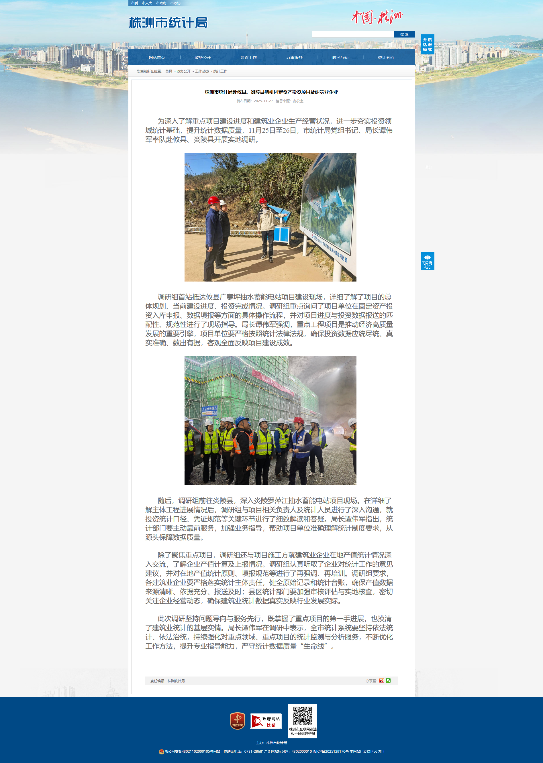 为深入了解重点项目建设进度和建筑业企业生产经营状况,进一步夯实投资领域统计基础,提升统计数据质量,11月25日至26日,市统计局党组书记、局长谭伟军率队赴攸县、炎陵县开展实地调研。