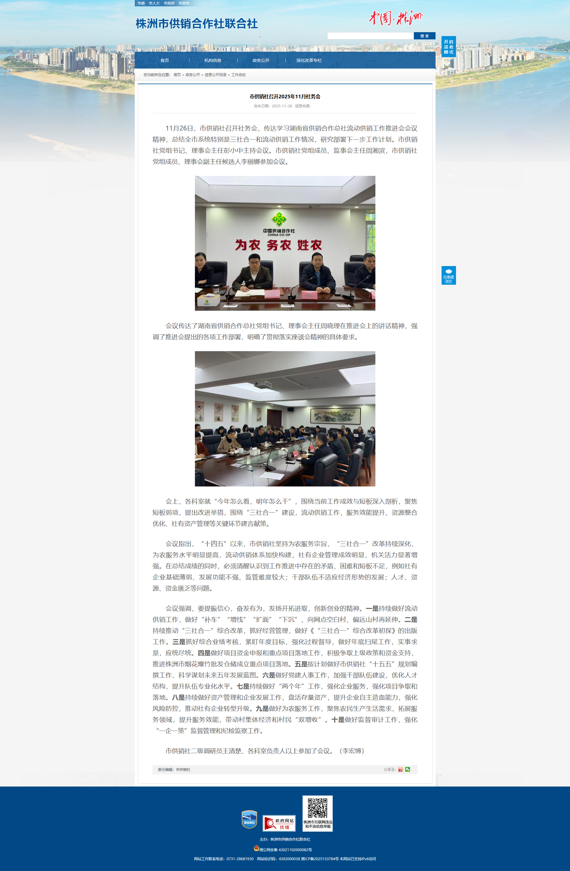 会议强调,要提振信心,奋发有为,发扬开拓进取,创新创业的精神。一是持续做好流动供销工作,做好“补车”“增线”“扩面”“下沉”,向网点空白村、偏远山村再延伸。二是持续推动“三社合一”综合改革,抓好经营管理,做好《“三社合一”综合改革初探》的出版工作。三是抓好综合业绩考核,紧盯年度目标,强化过程督导,做好年底扫尾工作,实事求是,应统尽统。四是做好项目资金申报和重点项目落地工作,积极争取上级政策和资金支持,推进株洲市烟花爆竹批发仓储成立重点项目落地。五是按计划做好市供销社“十五五”规划编撰工作,科学谋划未来五年发展蓝图。六是做好党建人事工作,加强干部队伍建设,优化人才结构,提升队伍专业化水平。七是持续做好“两个年”工作,强化企业服务,强化项目争取和落地。八是持续做好资产管理和企业发展工作,盘活存量资产,提升企业自主造血能力,强化风险防控,推动社有企业转型升级。九是做好为农服务工作,聚焦农民生产生活需求,拓展服务领域,提升服务效能,带动村集体经济和村民“双增收”。十是做好监督审计工作,强化“一企一策”监督管理和纪检监察工作。