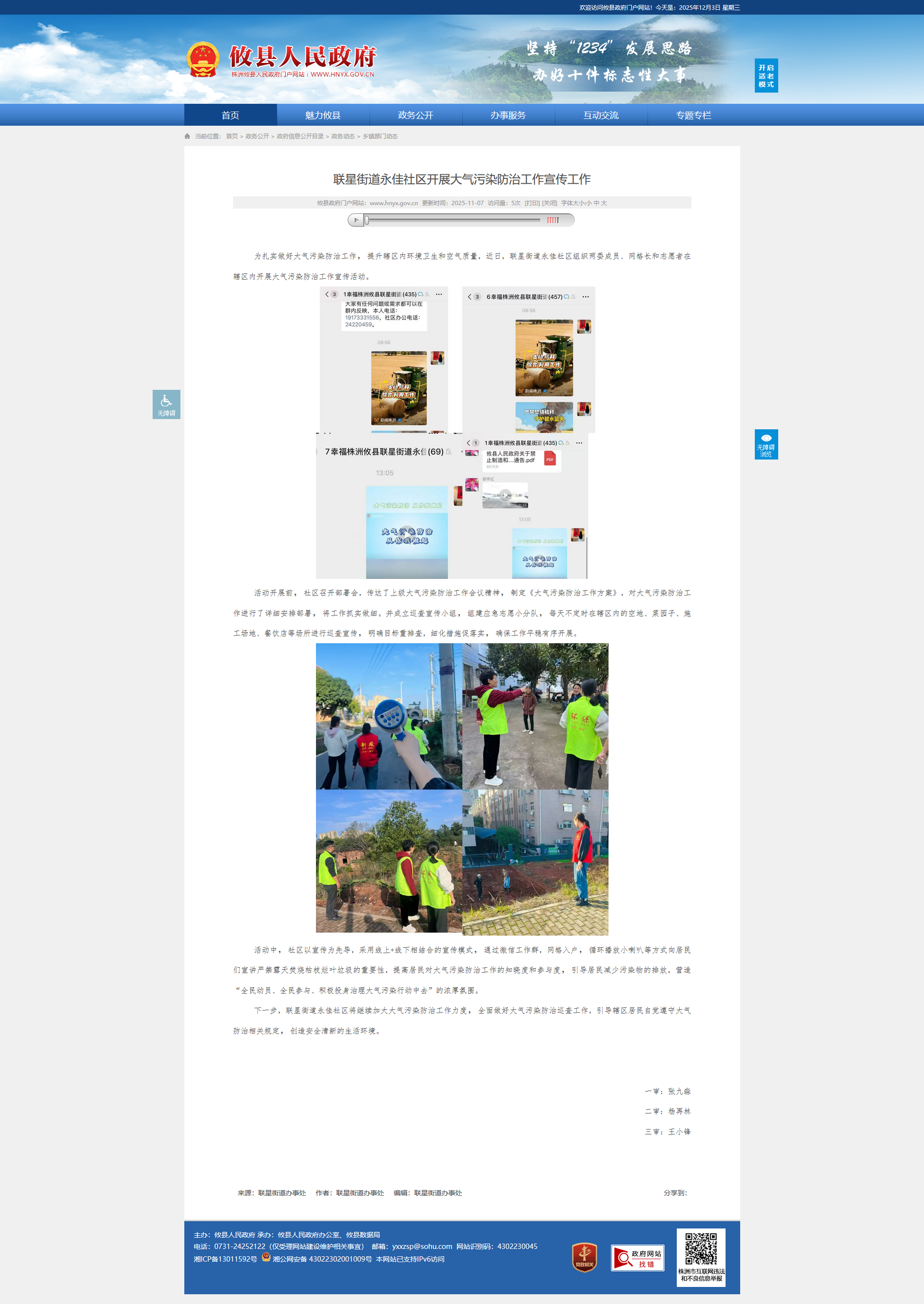 为扎实做好大气污染防治工作,提升辖区内环境卫生和空气质量,近日,联星街道永佳社区组织两委成员、网格长和志愿者在辖区内开展大气污染防治工作宣传活动。