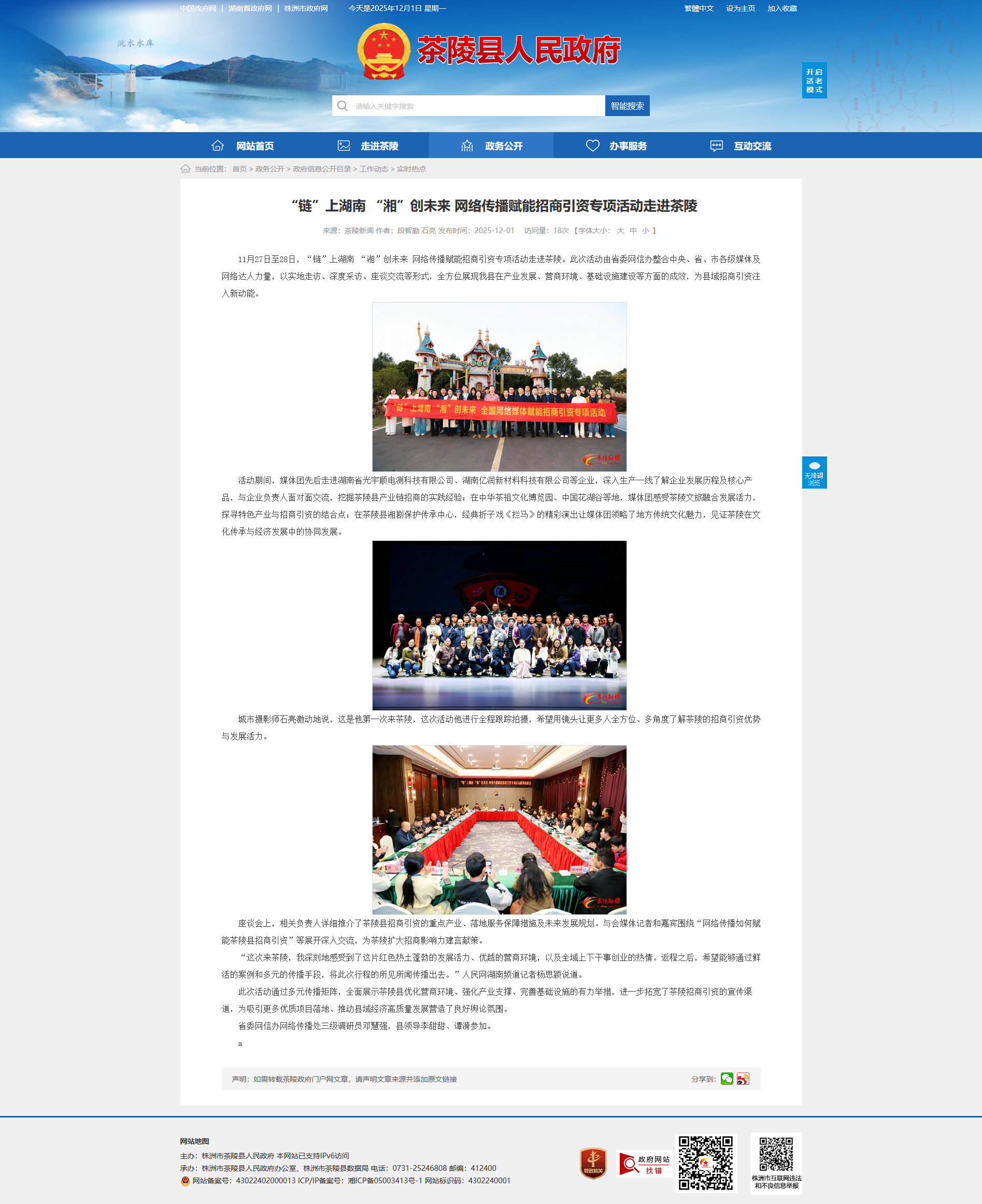 此次活动通过多元传播矩阵,全面展示茶陵县优化营商环境、强化产业支撑、完善基础设施的有力举措,进一步拓宽了茶陵招商引资的宣传渠道,为吸引更多优质项目落地、推动县域经济高质量发展营造了良好舆论氛围。