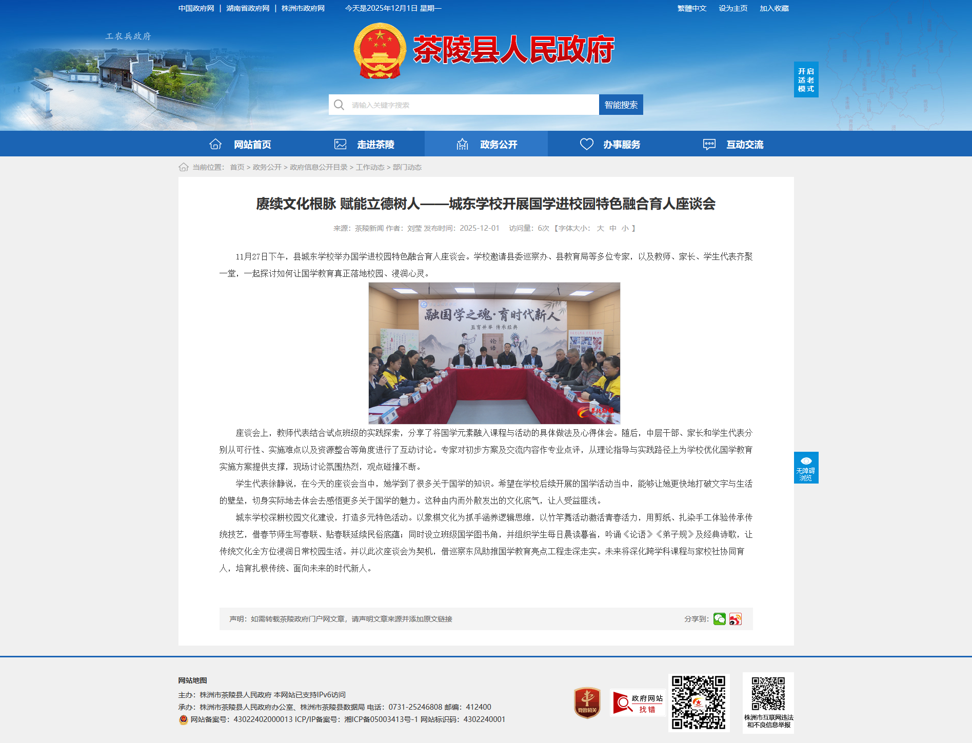 城东学校深耕校园文化建设,打造多元特色活动。以象棋文化为抓手涵养逻辑思维,以竹竿舞活动激活青春活力,用剪纸、扎染手工体验传承传统技艺,借春节师生写春联、贴春联延续民俗底蕴;同时设立班级国学图书角,并组织学生每日晨读暮省,吟诵《论语》《弟子规》及经典诗歌,让传统文化全方位浸润日常校园生活。并以此次座谈会为契机,借巡察东风助推国学教育亮点工程走深走实。未来将深化跨学科课程与家校社协同育人,培育扎根传统、面向未来的时代新人。