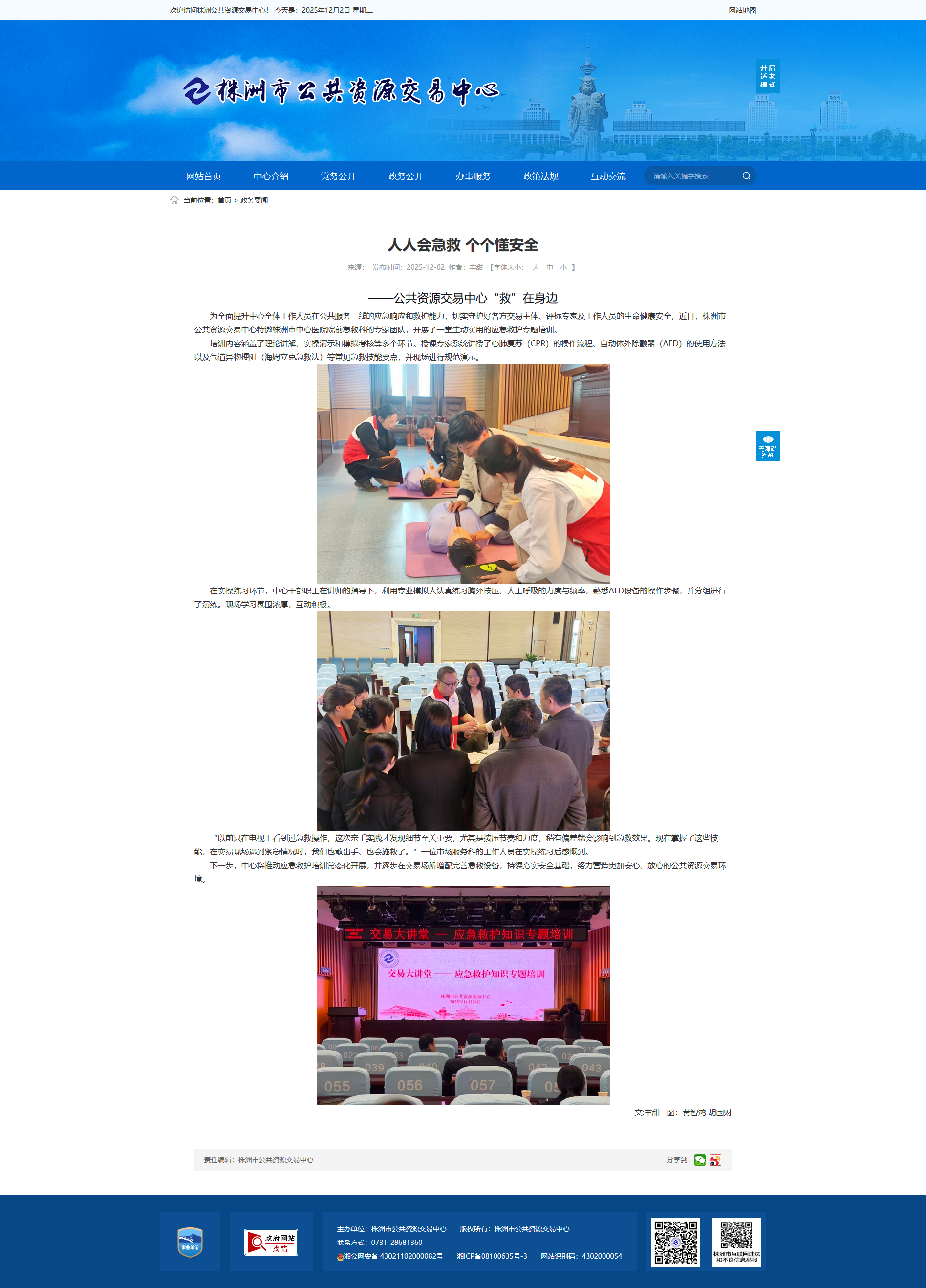 为全面提升中心全体工作人员在公共服务一线的应急响应和救护能力,切实守护好各方交易主体、评标专家及工作人员的生命健康安全,近日,株洲市公共资源交易中心特邀株洲市中心医院院前急救科的专家团队,开展了一堂生动实用的应急救护专题培训。