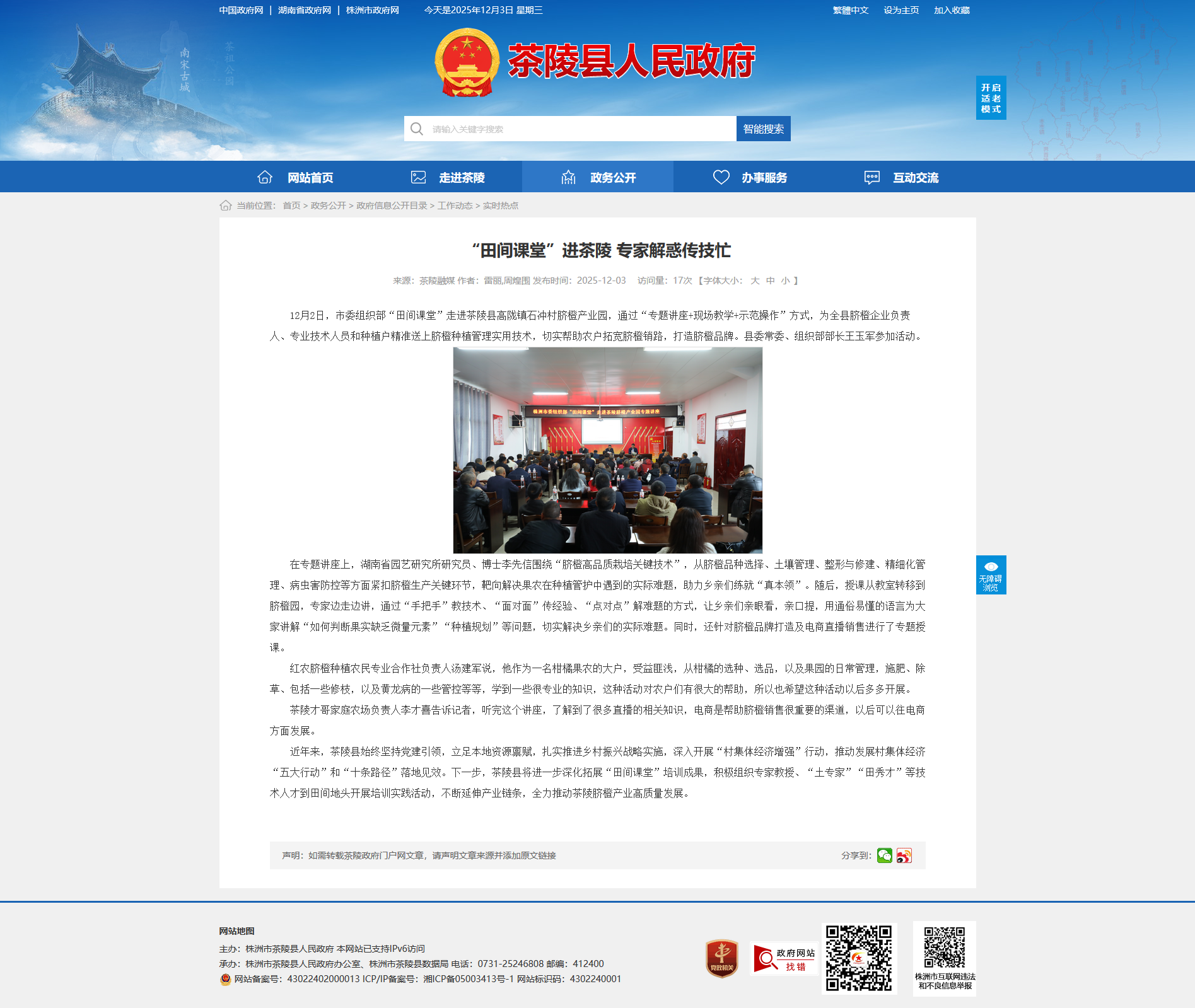 近年来,茶陵县始终坚持党建引领,立足本地资源禀赋,扎实推进乡村振兴战略实施,深入开展“村集体经济增强”行动,推动发展村集体经济“五大行动”和“十条路径”落地见效。下一步,茶陵县将进一步深化拓展“田间课堂”培训成果,积极组织专家教授、“土专家”“田秀才”等技术人才到田间地头开展培训实践活动,不断延伸产业链条,全力推动茶陵脐橙产业高质量发展。