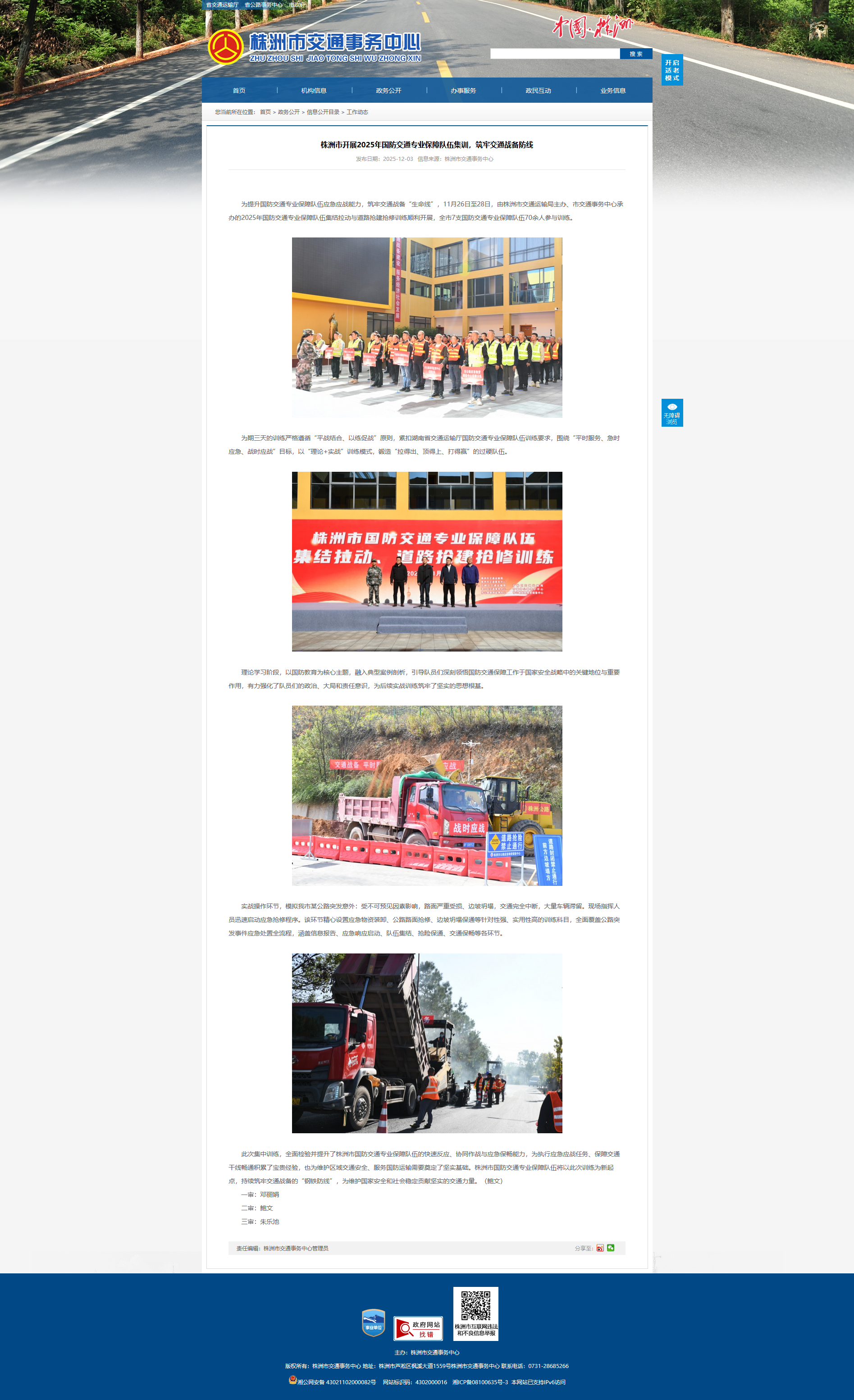 为提升国防交通专业保障队伍应急应战能力,筑牢交通战备“生命线”,11月26日至28日,由株洲市交通运输局主办、市交通事务中心承办的2025年国防交通专业保障队伍集结拉动与道路抢建抢修训练顺利开展,全市7支国防交通专业保障队伍70余人参与训练。
