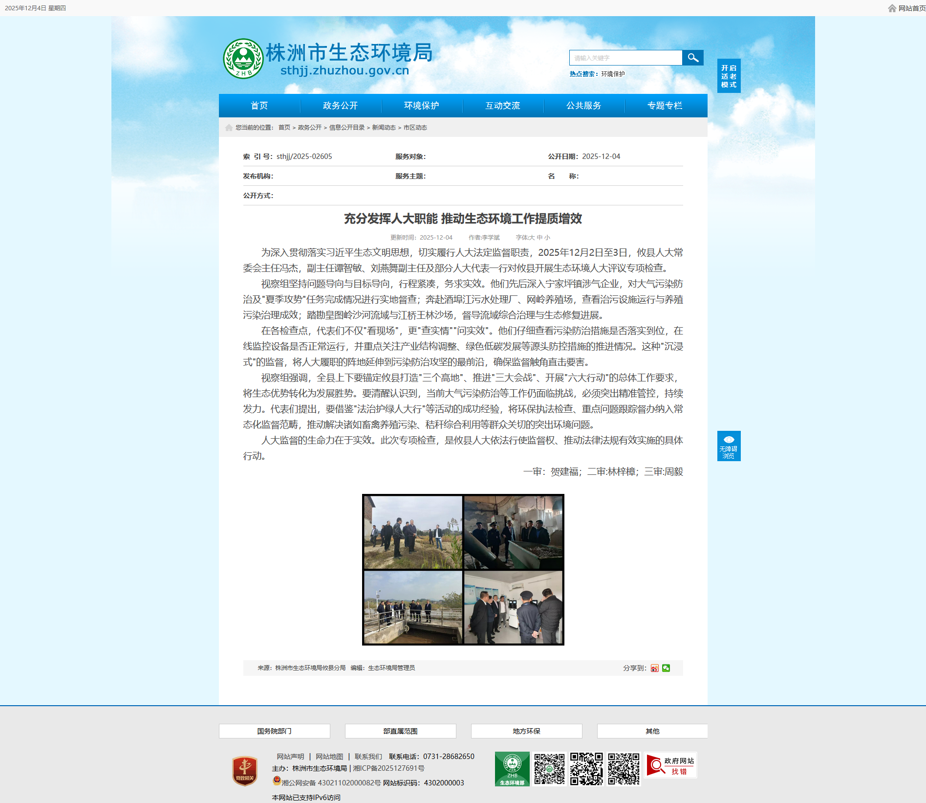 为深入贯彻落实习近平生态文明思想,切实履行人大法定监督职责,2025年12月2日至3日,攸县人大常委会主任冯杰,副主任谭智敏、刘燕舞副主任及部分人大代表一行对攸县开展生态环境人大评议专项检查。
