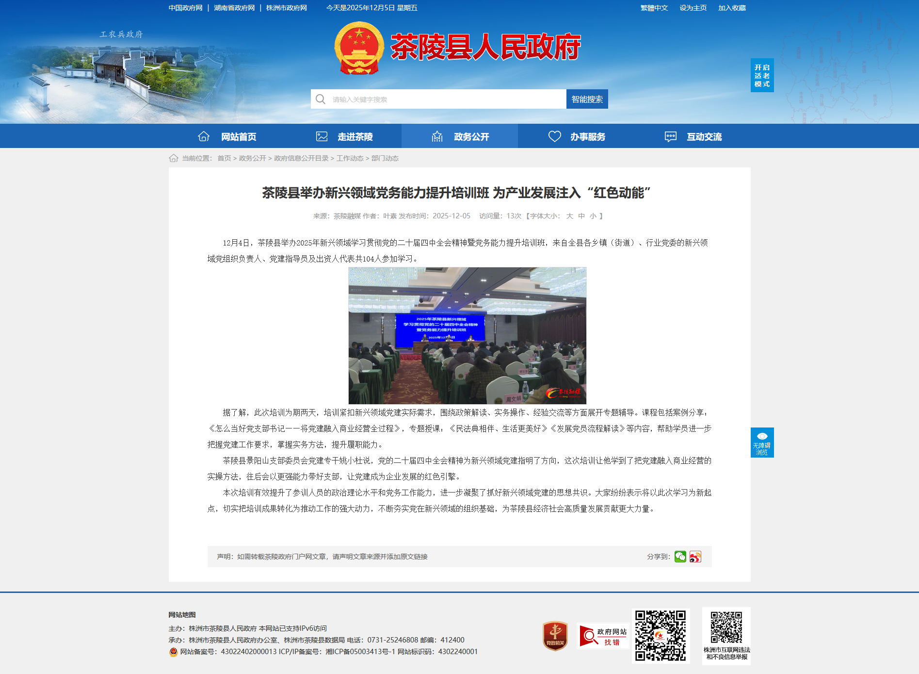 12月4日,茶陵县举办2025年新兴领域学习贯彻党的二十届四中全会精神暨党务能力提升培训班,来自全县各乡镇(街道)、行业党委的新兴领域党组织负责人、党建指导员及出资人代表共104人参加学习。