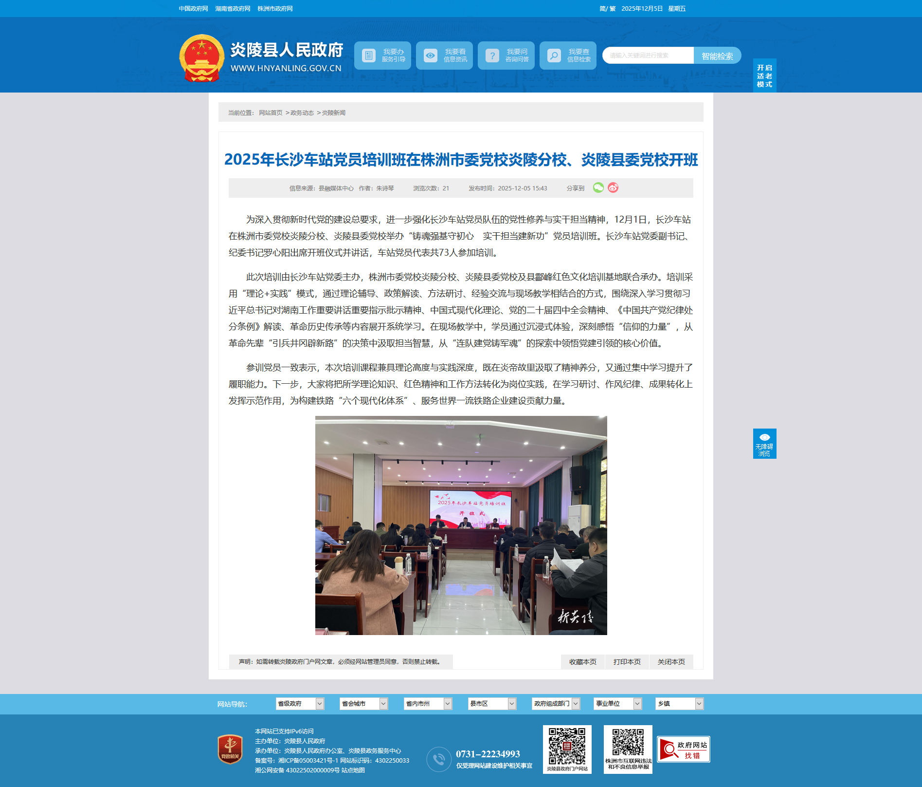 为深入贯彻新时代党的建设总要求,进一步强化长沙车站党员队伍的党性修养与实干担当精神,12月1日,长沙车站在株洲市委党校炎陵分校、炎陵县委党校举办“铸魂强基守初心 实干担当建新功”党员培训班。长沙车站党委副书记、纪委书记罗心阳出席开班仪式并讲话,车站党员代表共73人参加培训。