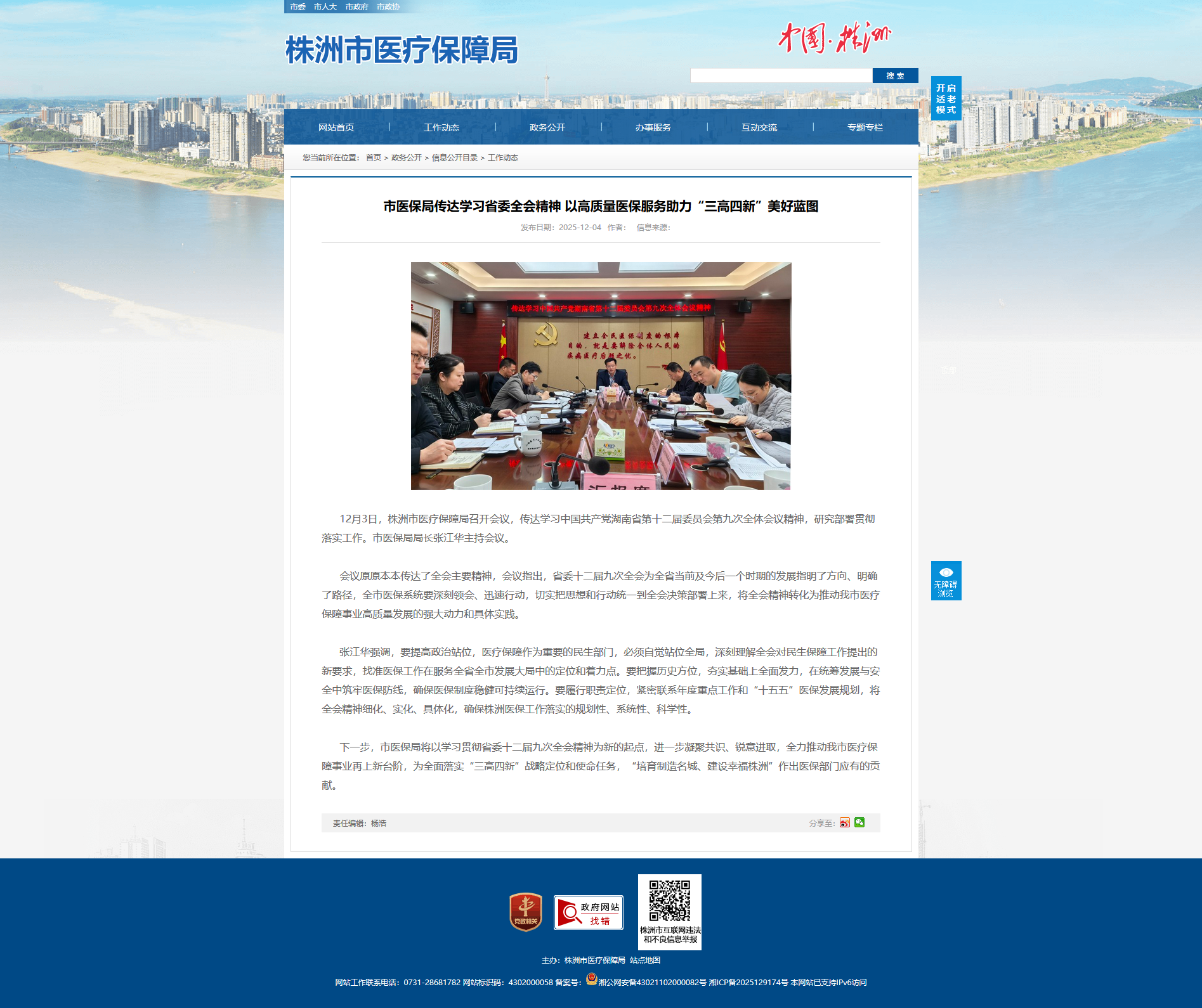 12月3日,株洲市医疗保障局召开会议,传达学习中国共产党湖南省第十二届委员会第九次全体会议精神,研究部署贯彻落实工作。市医保局局长张江华主持会议。