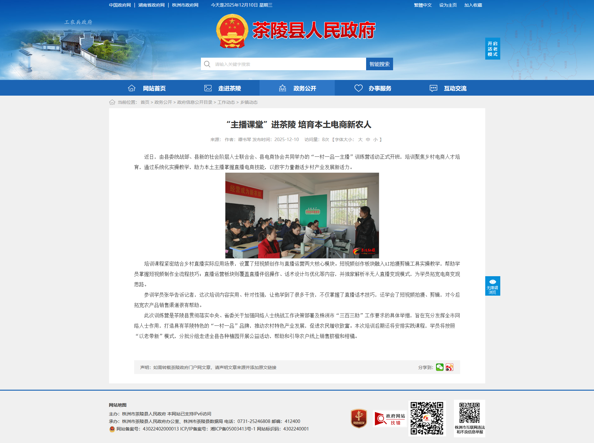 此次训练营是茶陵县贯彻落实中央、省委关于加强网络人士统战工作决策部署及株洲市“三百三助”工作要求的具体举措,旨在充分发挥全市网络人士作用,打造具有茶陵特色的“一村一品”品牌,推动农村特色产业发展,促进农民增收致富。本次培训后期还将安排实践课程,学员将按照“以老带新”模式,分批分组走进全县各种植园开展公益活动,帮助和引导农户线上销售脐橙和柑橘。