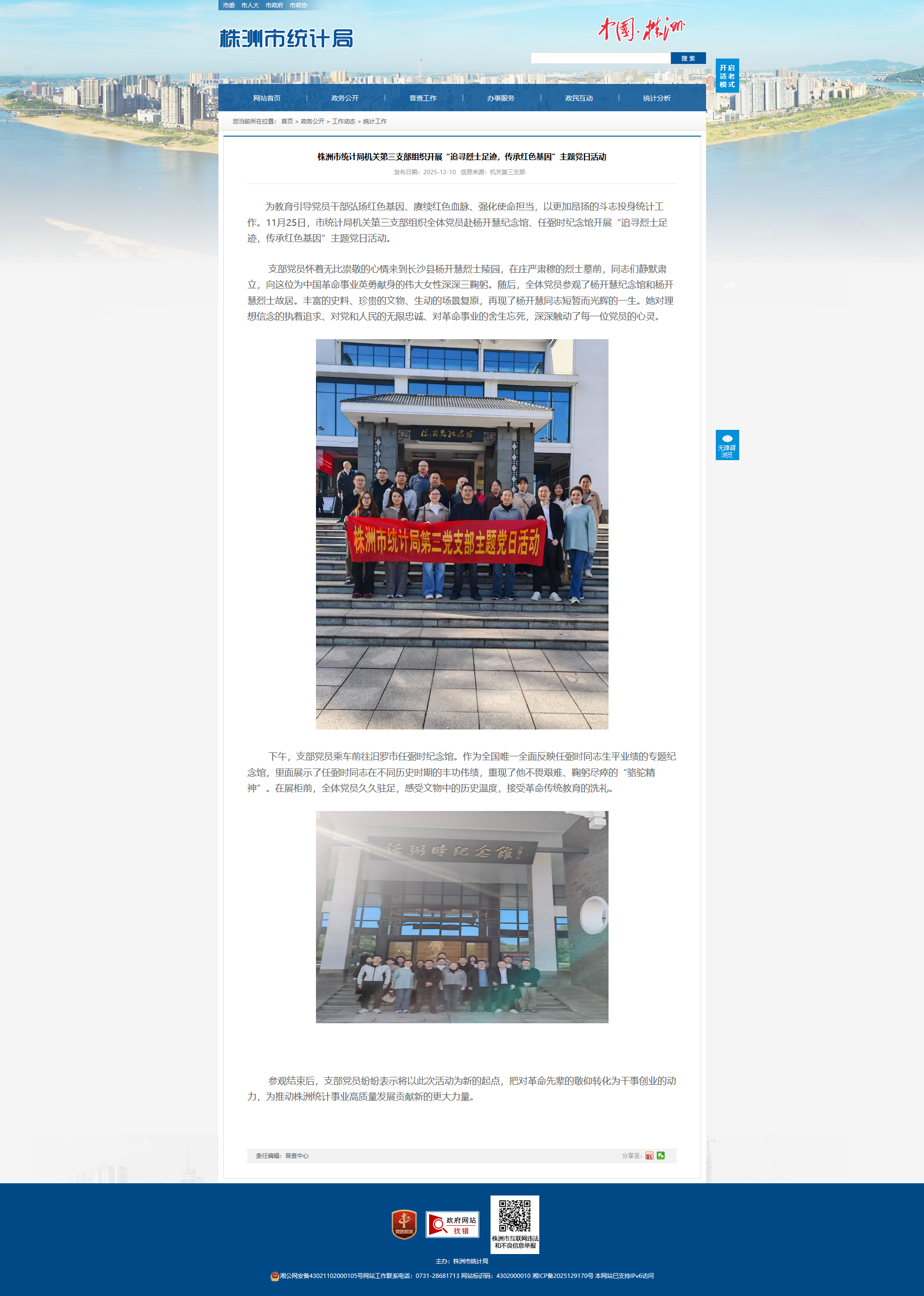 参观结束后,支部党员纷纷表示将以此次活动为新的起点,把对革命先辈的敬仰转化为干事创业的动力,为推动株洲统计事业高质量发展贡献新的更大力量。