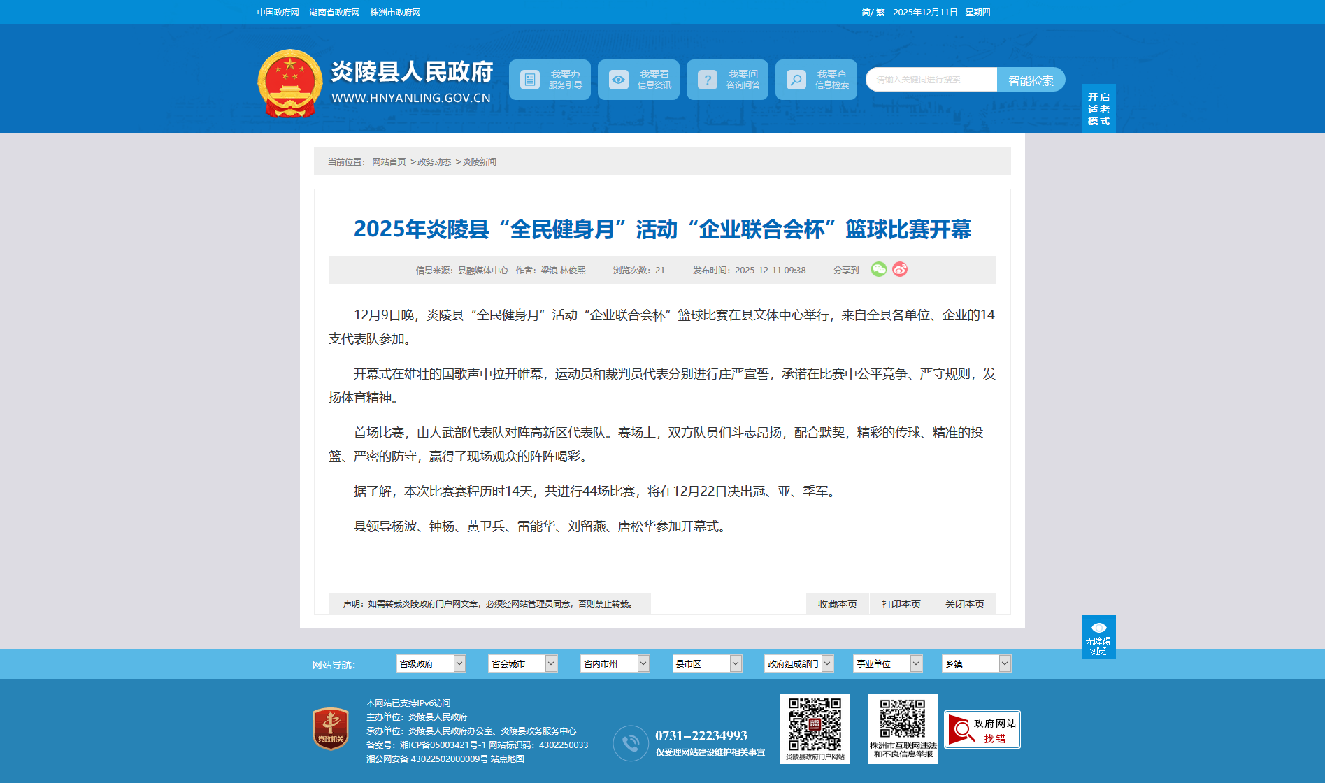 12月9日晚,炎陵县“全民健身月”活动“企业联合会杯”篮球比赛在县文体中心举行,来自全县各单位、企业的14支代表队参加。