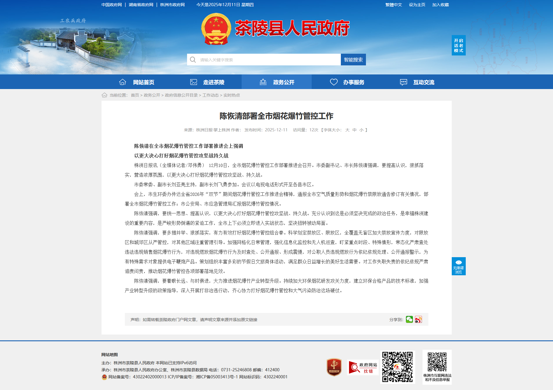 株洲日报讯(全媒体记者/邓伟勇) 12月10日,全市烟花爆竹管控工作部署推进会召开。市委副书记、市长陈恢清强调,要提高认识,狠抓落实,营造浓厚氛围,以更大决心打好烟花爆竹管控攻坚战、持久战。