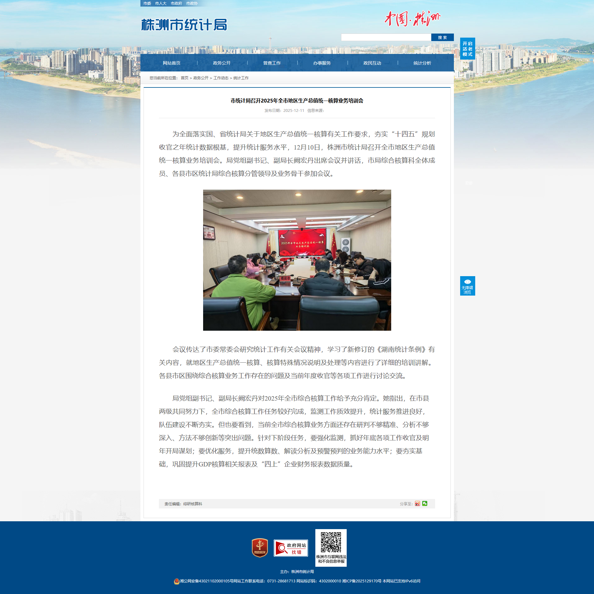 为全面落实国、省统计局关于地区生产总值统一核算有关工作要求,夯实“十四五”规划收官之年统计数据根基,提升统计服务水平,12月10日,株洲市统计局召开全市地区生产总值统一核算业务培训会。局党组副书记、副局长阙宏丹出席会议并讲话,市局综合核算科全体成员、各县市区统计局综合核算分管领导及业务骨干参加会议。