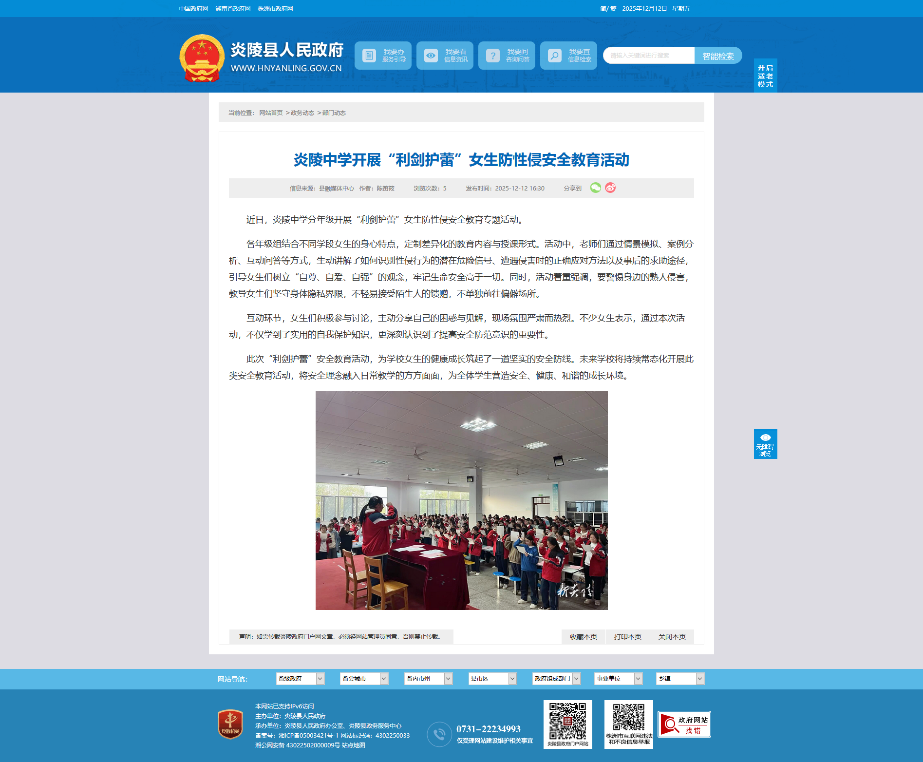 近日,炎陵中学分年级开展“利剑护蕾”女生防性侵安全教育专题活动。