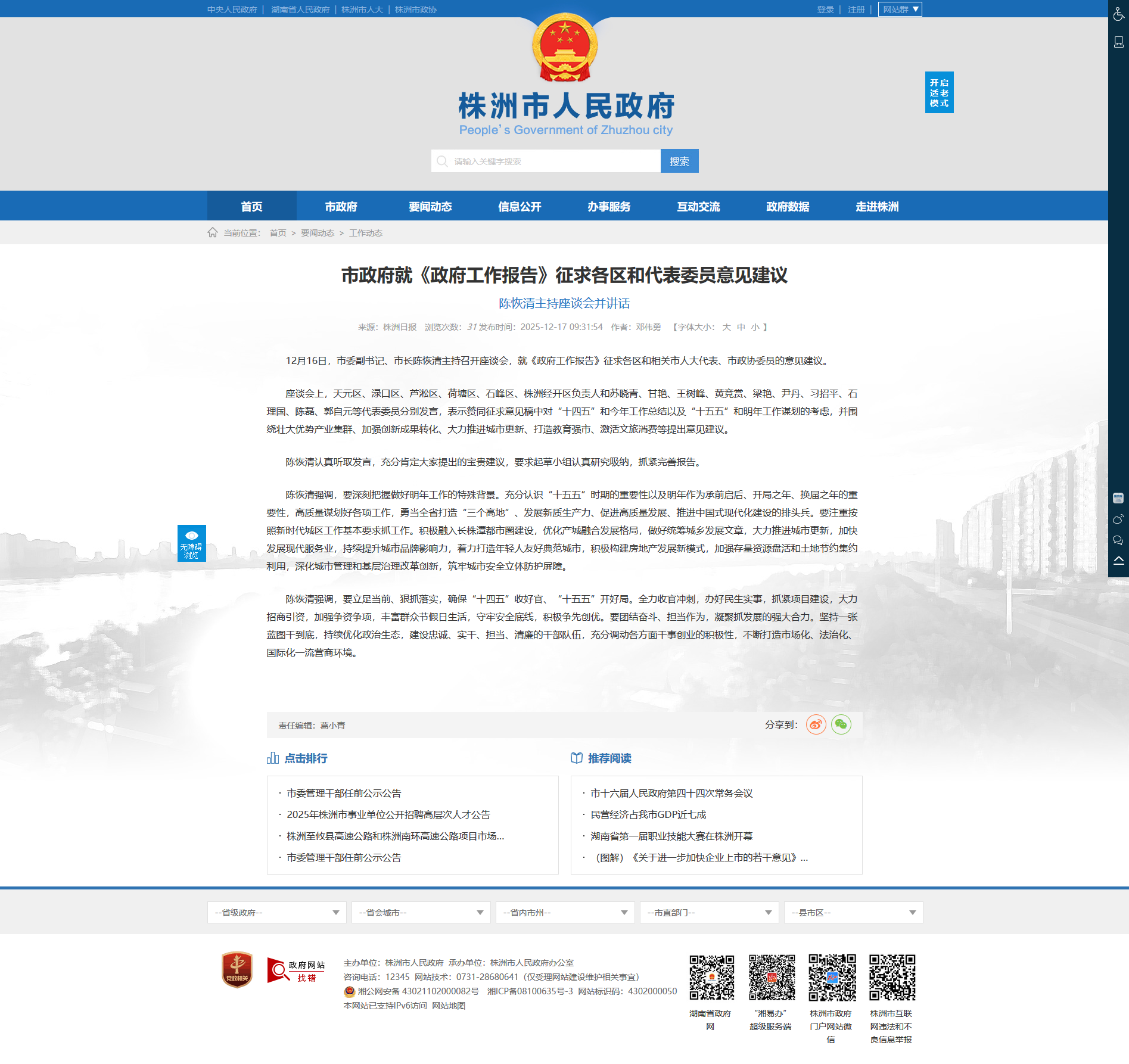 座谈会上,天元区、渌口区、芦淞区、荷塘区、石峰区、株洲经开区负责人和苏晓青、甘艳、王树峰、黄竞赏、梁艳、尹丹、习招平、石理国、陈磊、郭自元等代表委员分别发言,表示赞同征求意见稿中对“十四五”和今年工作总结以及“十五五”和明年工作谋划的考虑,并围绕壮大优势产业集群、加强创新成果转化、大力推进城市更新、打造教育强市、激活文旅消费等提出意见建议。