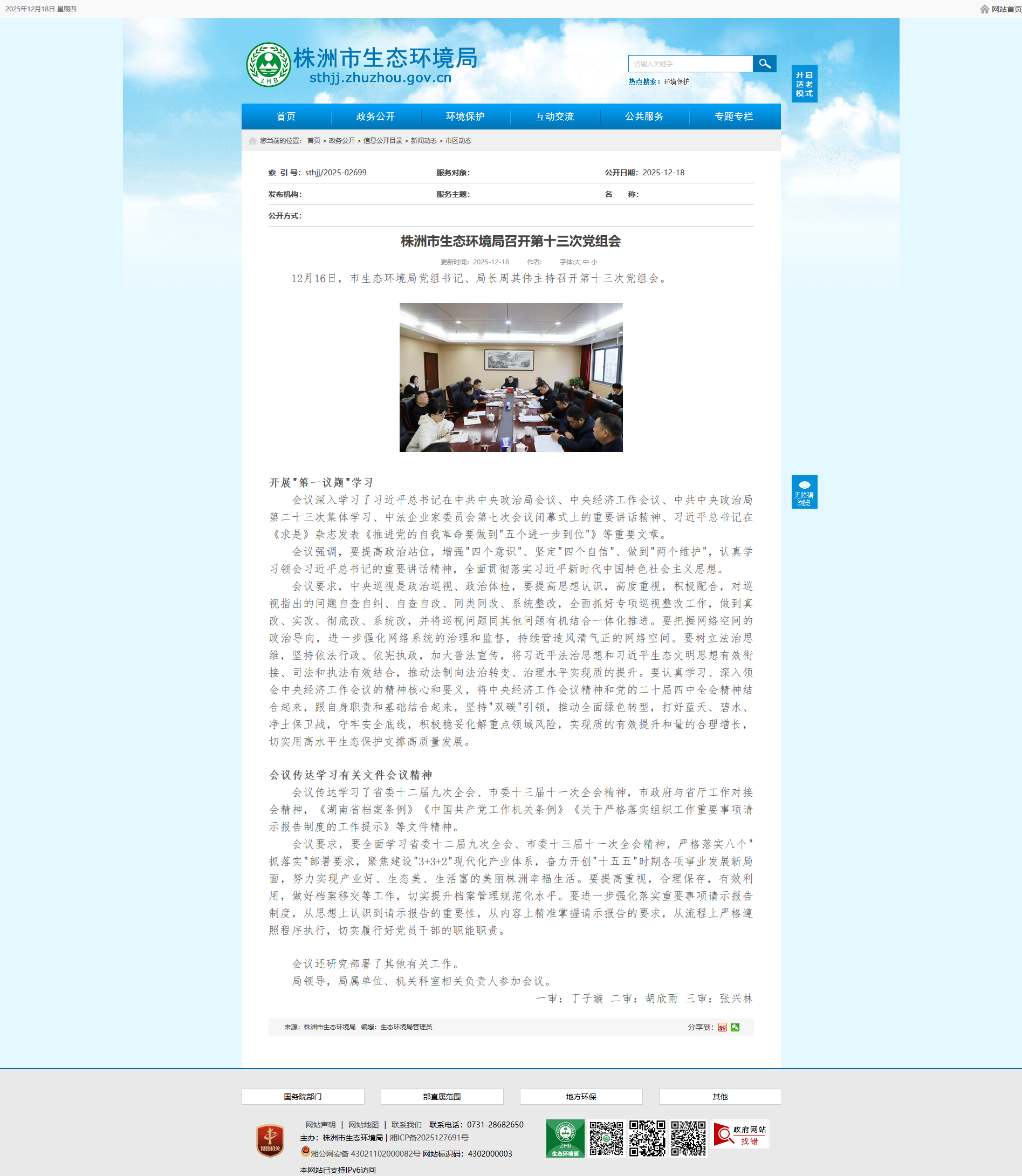 12月16日,市生态环境局党组书记、局长周其伟主持召开第十三次党组会。