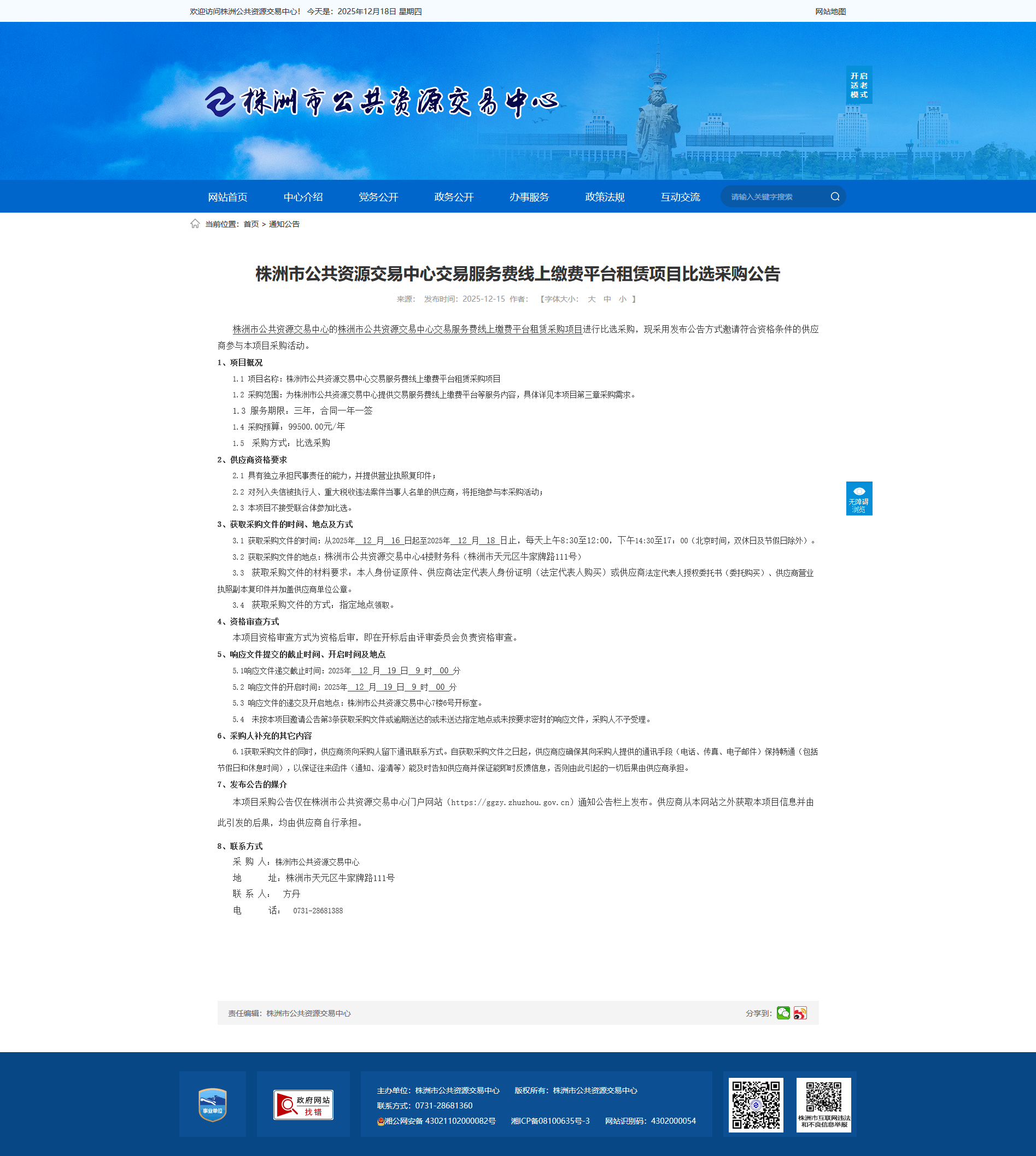 时间:2025-12-15 00:00:00 来源: 株洲市公共资源交易中心 来源截图