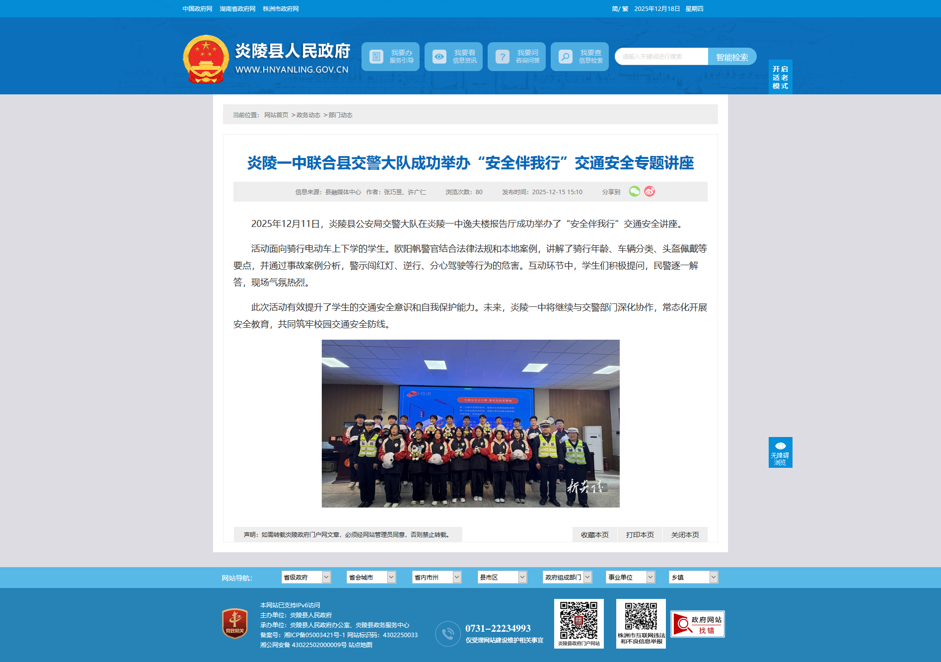 2025年12月11日,炎陵县公安局交警大队在炎陵一中逸夫楼报告厅成功举办了“安全伴我行”交通安全讲座。
