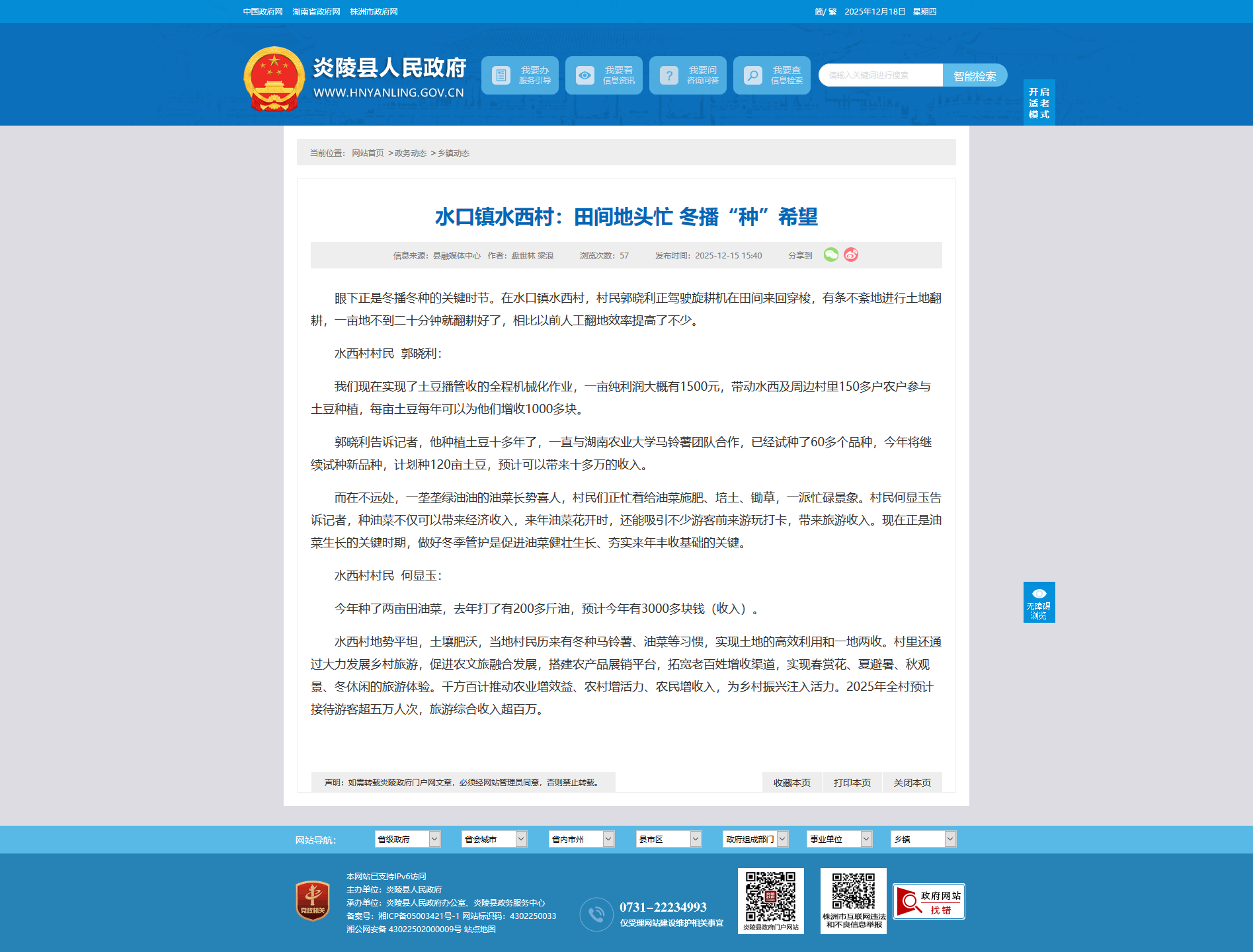水西村地势平坦,土壤肥沃,当地村民历来有冬种马铃薯、油菜等习惯,实现土地的高效利用和一地两收。村里还通过大力发展乡村旅游,促进农文旅融合发展,搭建农产品展销平台,拓宽老百姓增收渠道,实现春赏花、夏避暑、秋观景、冬休闲的旅游体验。千方百计推动农业增效益、农村增活力、农民增收入,为乡村振兴注入活力。2025年全村预计接待游客超五万人次,旅游综合收入超百万。